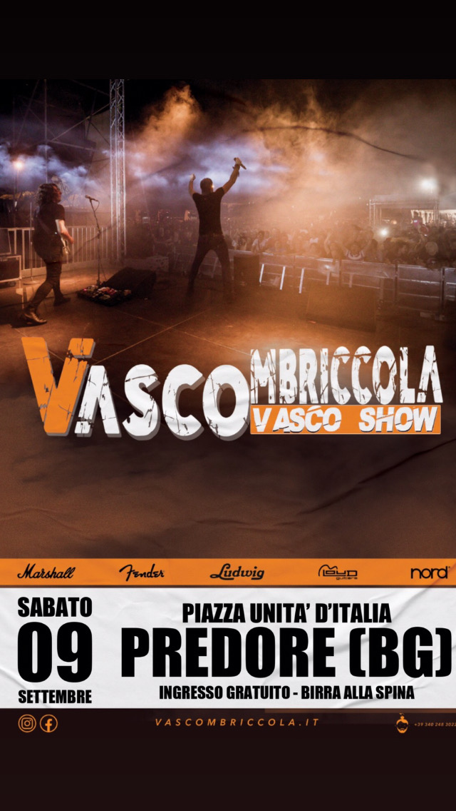 Pro Loco Eventi Predore organizza sabato 9 settembre un concerto tributo a Vasco Rossi in piazza Unitร dโItalia.