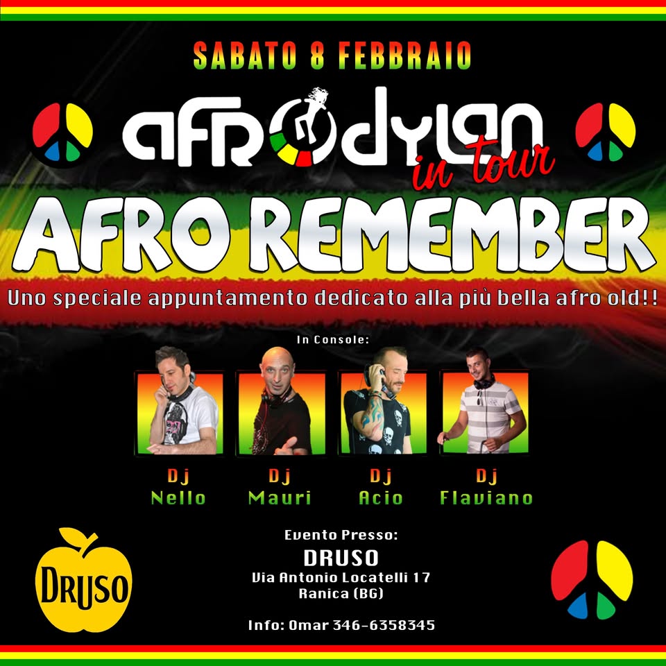 Sabato 8 febbraio, l'Afrodylan torna con uno Special Remember: i migliori DJ della scena, tra cui DJ Nello, DJ Mauri, DJ Acio e DJ Flaviano, ti faranno ballare tutta la notte sulle hit afrodylan che hanno fatto storia!