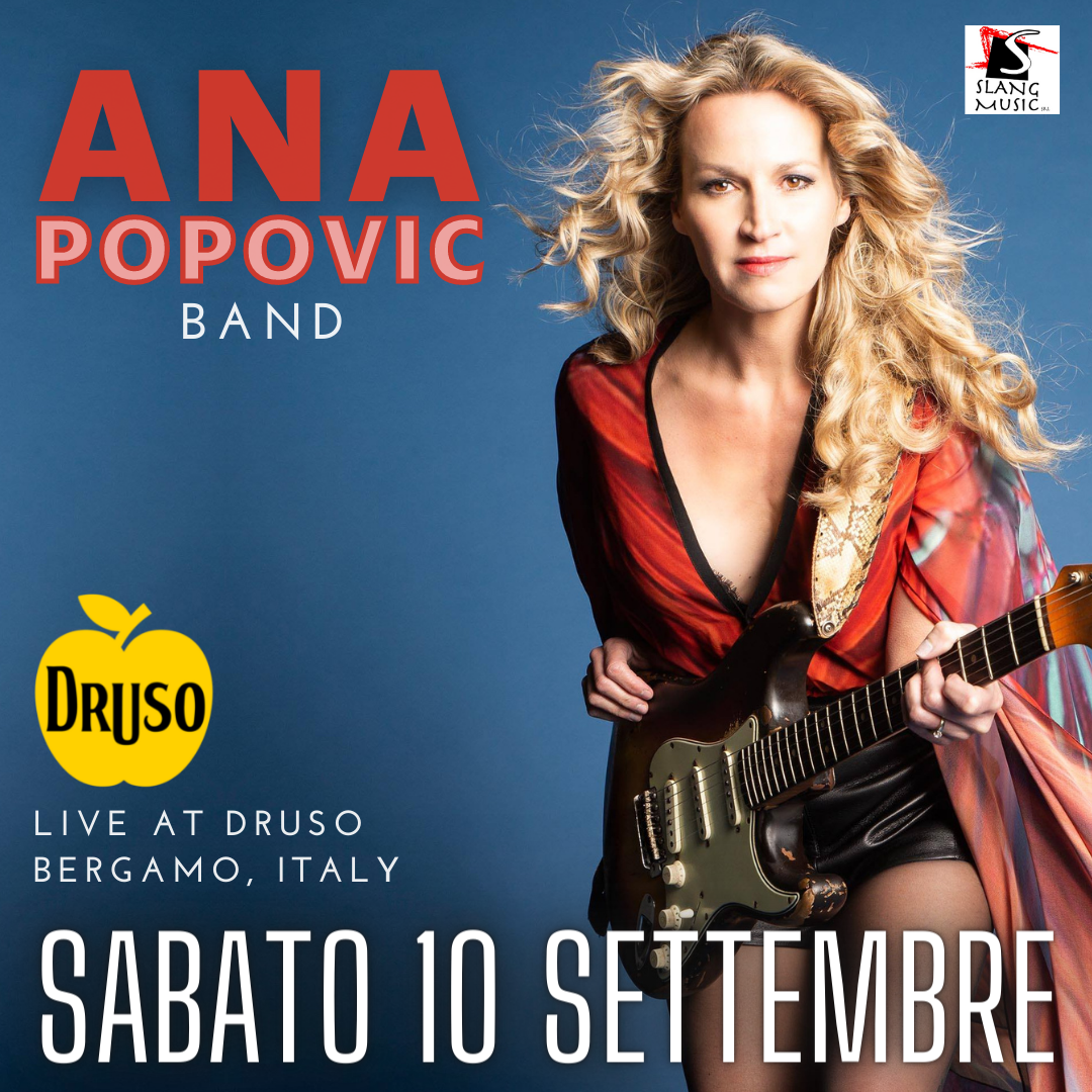 La pluripremiata chitarrista e cantante serba, considerata tra i migliori musicisti blues del mondo, vi aspetta con il suo sestetto sul palco del Druso con uno show davvero entusiasmante. Ana ha recentemente celebrato i venti anni in tournè con l'uscita di live for LIVE un DVD piu album dal vivo che mostra con orgoglio una carriera consolidata da migliaia di spettacoli in tutto il mondo, condividendo i palchi con leggende del calibro di B.B. King, Buddy Guy, Jeff Beck, Joe Bonamassa e molti altri Line Up Ana Popovic guitar vocals Buthel Burns bass b-vocals Kwesi Robinson drums b vocals Michele Papadia keys Claudio Giovagnoli sax Davide Ghidoni trumpet