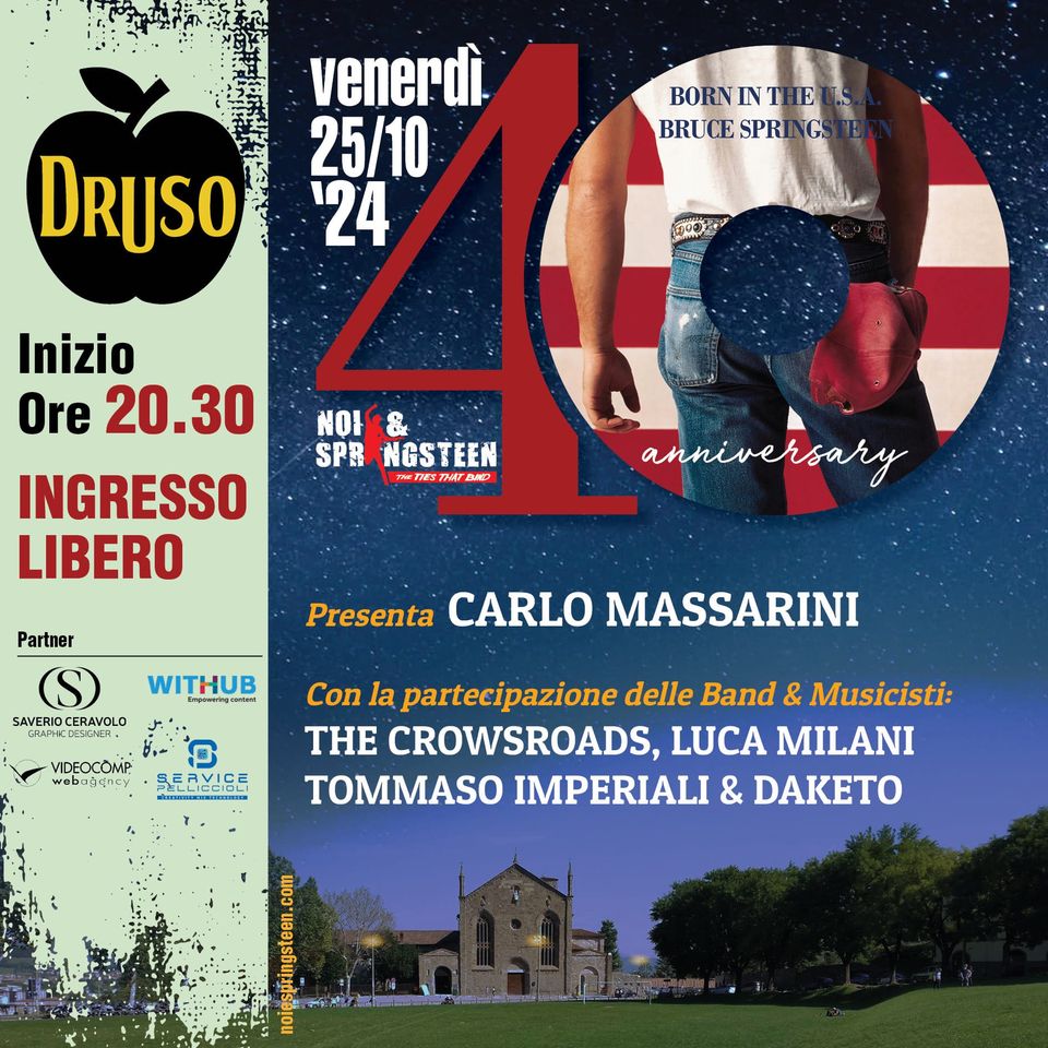 Insieme a Carlo Massarini verrà raccontata la storia di questo meraviglioso Album che ha portato alla ribalta Bruce Springsteen a livello mondiale. Un Album spesso male interpretato e dai contenuti forti per un'America allora alle prese con una serie di problemi ancora oggi purtroppo attuali per certi versi.