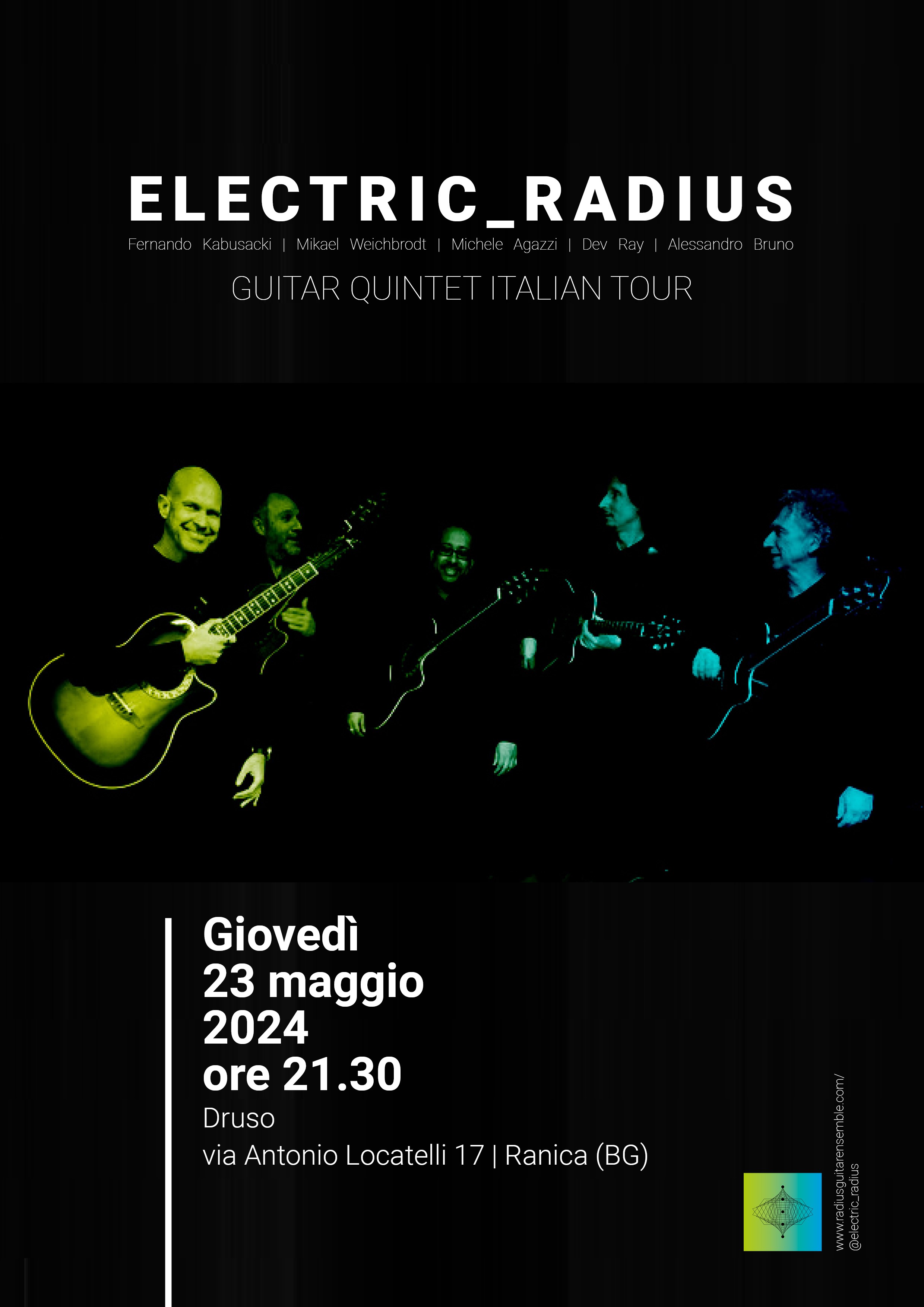 Electric Radius è un ensemble di chitarre acustiche composto da cinque elementi nato all’interno del Guitar Craft/Guitar Circle, scuola itinerante fondata da Robert Fripp nel 1985.