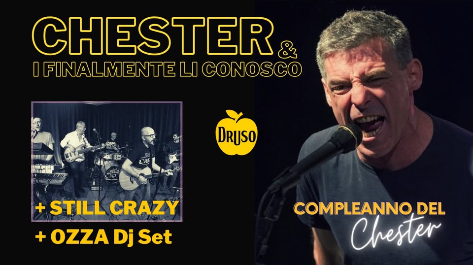 Sabato 16 marzo, al Druso di Bergamo: il compleanno del Chesterone diventa una festa rock funk imperdibile con Chester & i Finalmente Li Conosco, Still Crazy Band e Ozza Dj Set!