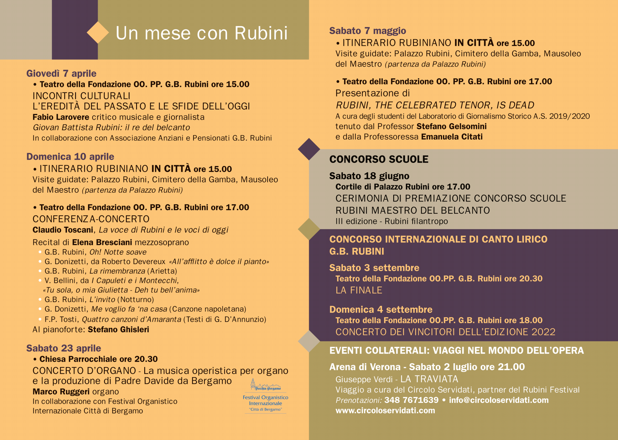 All'interno della programmazione del "Rubini Festival", una conferenza-concerto con Claudio Toscani. A seguire il recital di Elena Bresciani, accompagnata al pianoforte da Stefano Ghisleri.