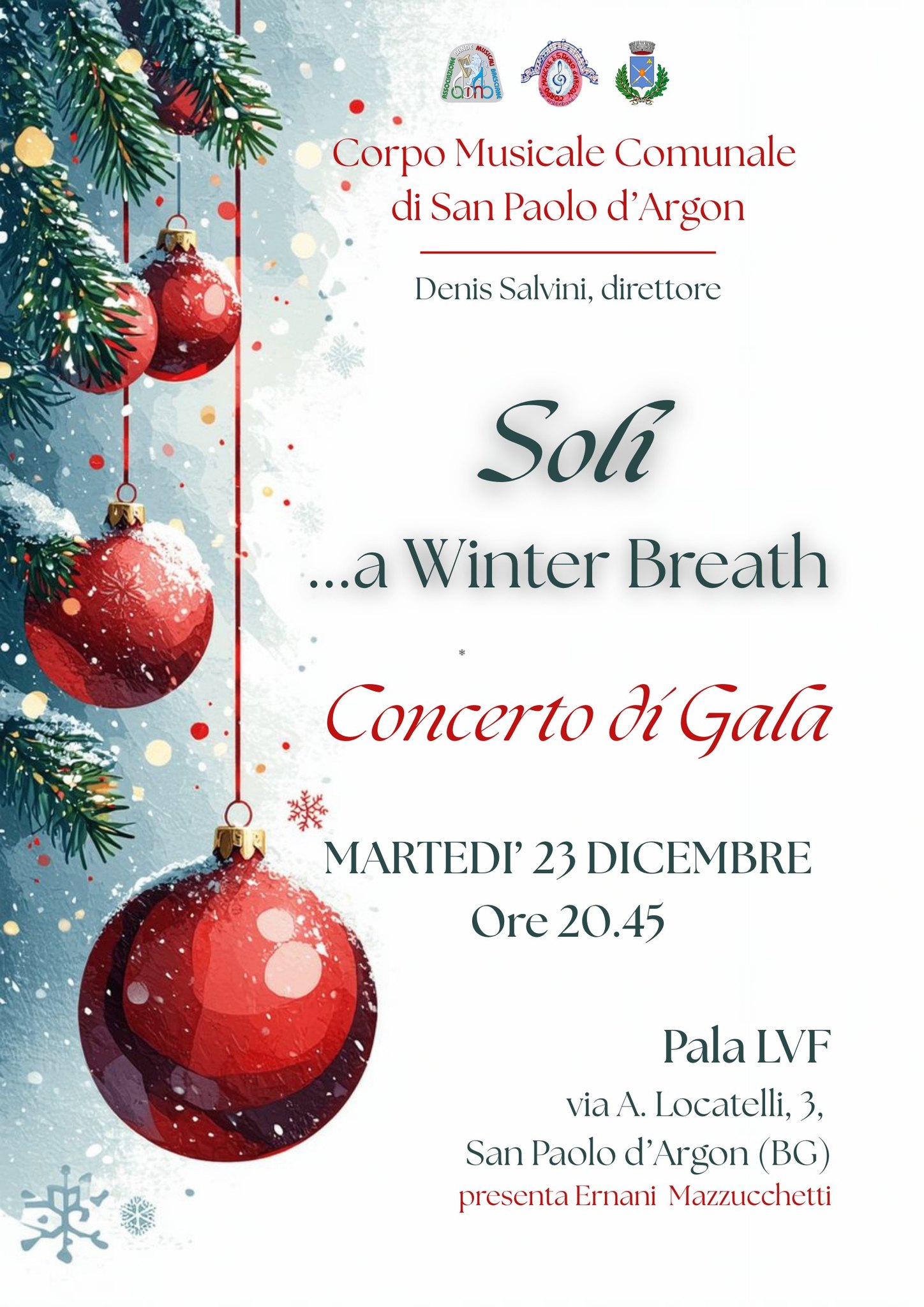 Protagonista della serata sarà il Corpo Musicale Comunale di San Paolo d’Argon, che guiderà gli ascoltatori in un viaggio sonoro intenso e suggestivo, arricchito dal dialogo con alcuni strumenti solisti: flauto, tromba, corni e percussioni. Ogni intervento solistico diventerà una voce distinta, capace di emergere dall’insieme e poi rientrare nell’abbraccio dell’organico bandistico, creando un continuo gioco di contrasti e armonie.