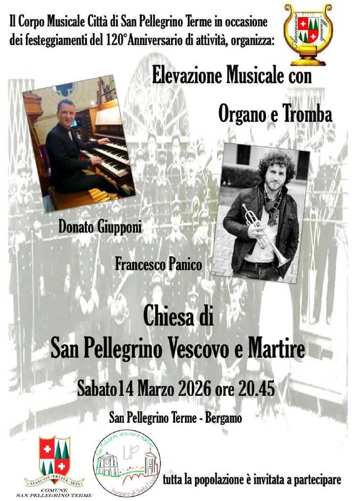 In occasione del 120° anniversario dalla nascita del Corpo Musicale di San Pellegrino, presso la Chiesa di San Pellegrino Vescovo e Martire, è in programma un'elevazione musicale a cura di Donato Giupponi e Francesco Panico.