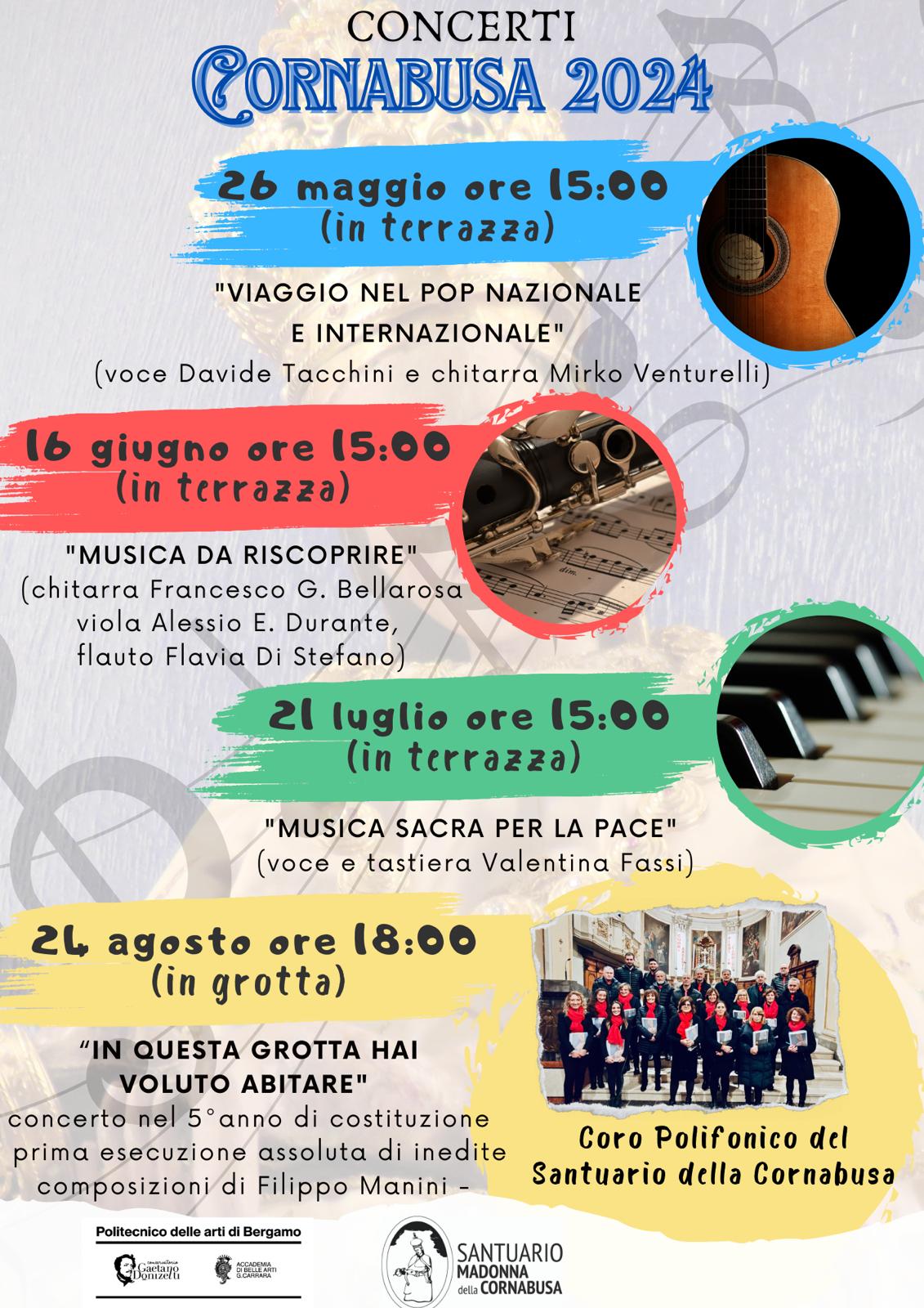 Presso il Santuario della Cornabusa si terrà il concerto in collaborazione con Politecnico delle Arti - Conservatorio di BG.