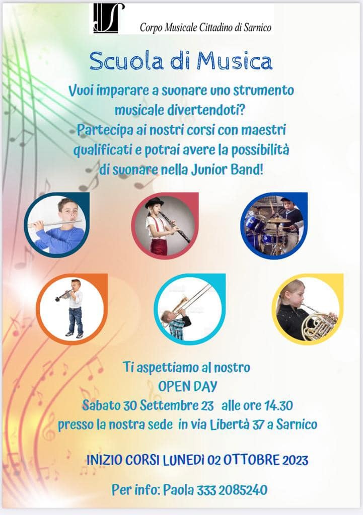 Per chiunque voglia imparare a conoscere e studiare musica, si terrà un open day della Scuola di Musica, presso la Sede del Corpo cittadino Musicale di Sarnico.
