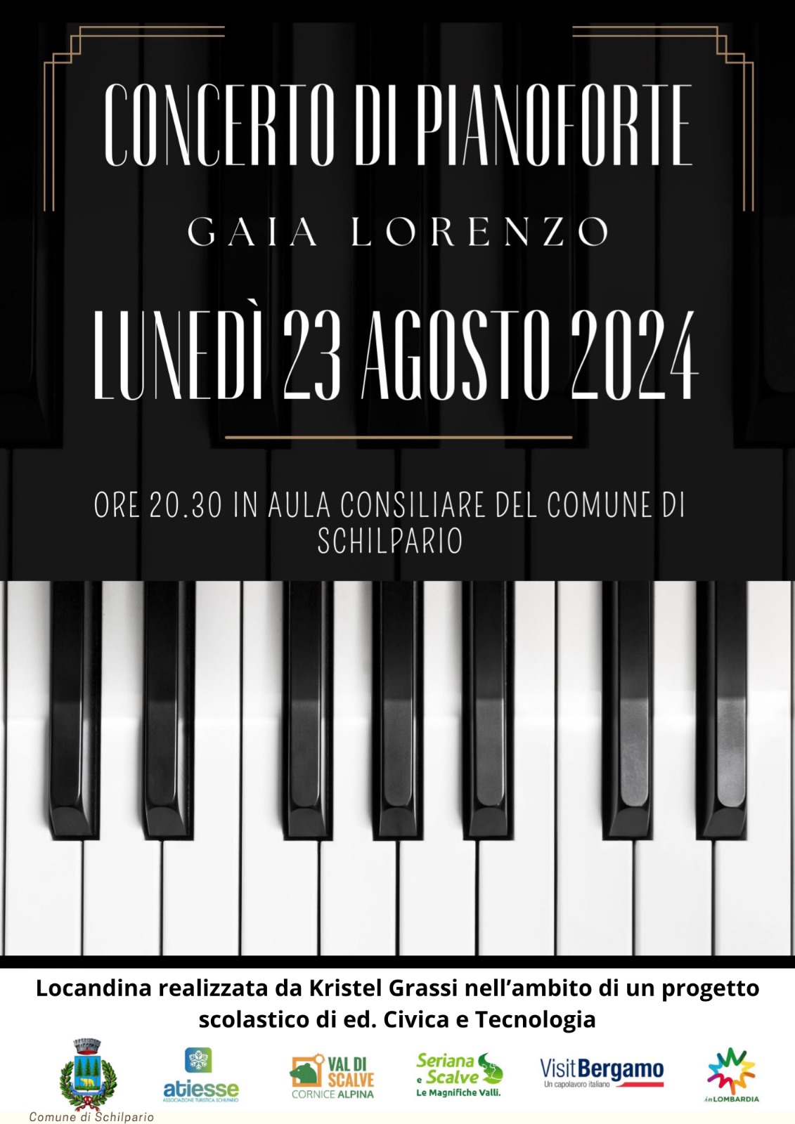 Lunedì 23 Agosto, alle ore 20.30, nell'aula consiliare del comune di Schilpario, avrà luogo il concerto di musica classica di Gaia Lorenzo.