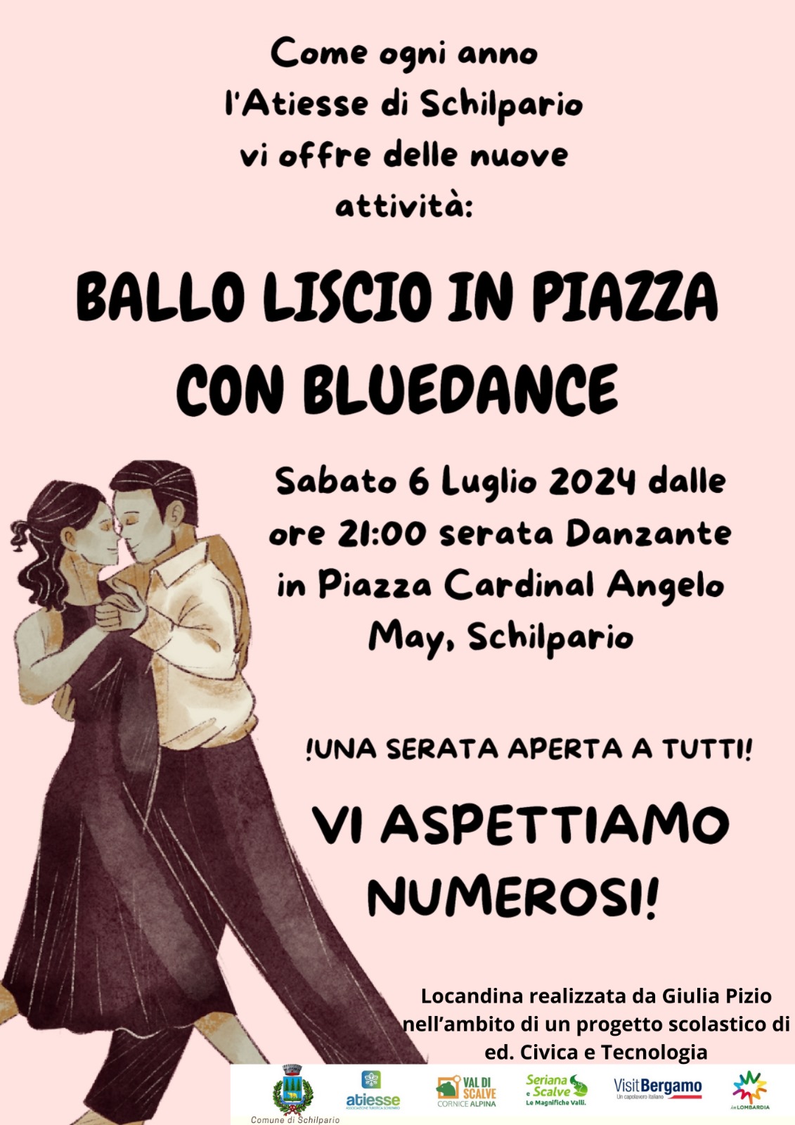 Come ogni anno l'Atiesse Schilpario offre numerose attività diverse tra le quali "Ballo liscio in piazza con Bluedance", una serata aperta a tutti coloro a cui piace ballare.