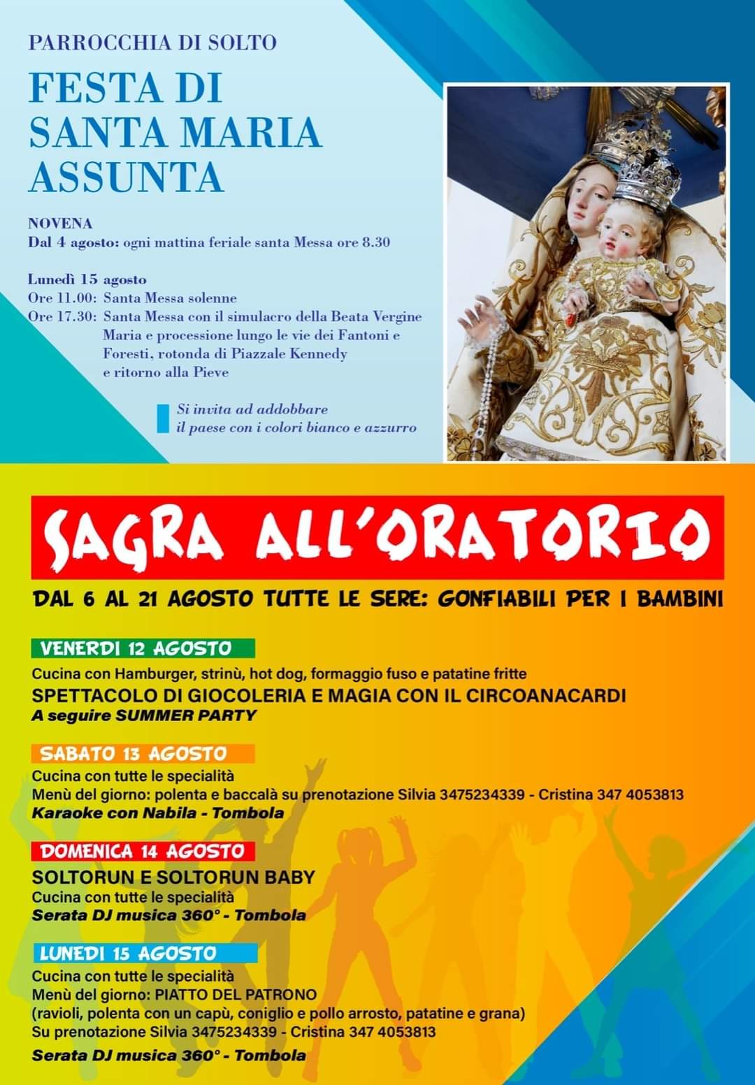 In occasione della Festa di Santa Maria Assunta, organizzata dalla parrocchia di Solto Collina per celebrare la propria patrona, si terrà la meravigliosa "Sagra all'oratorio".