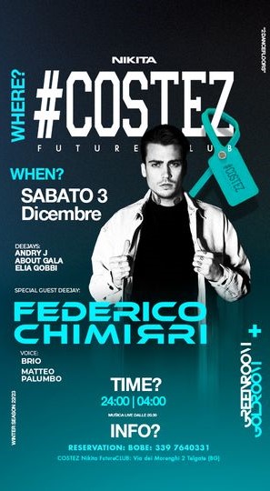 Italoargentino e seminifinalista di Masterchef, Federico Chimirri è prima di tutto un dj decisamente richiesto nei locali italiani e non solo.
