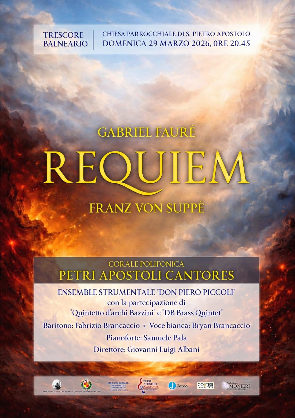 Alla Chiesa parrocchiale di San Pietro apostolo di Trescore Balneario, รจ in programma un'elevazione musicale della Corale Petri apostoli cantores, con la partecipazione del Quintetto d'archi Bazzini e DB Brass Quintet.