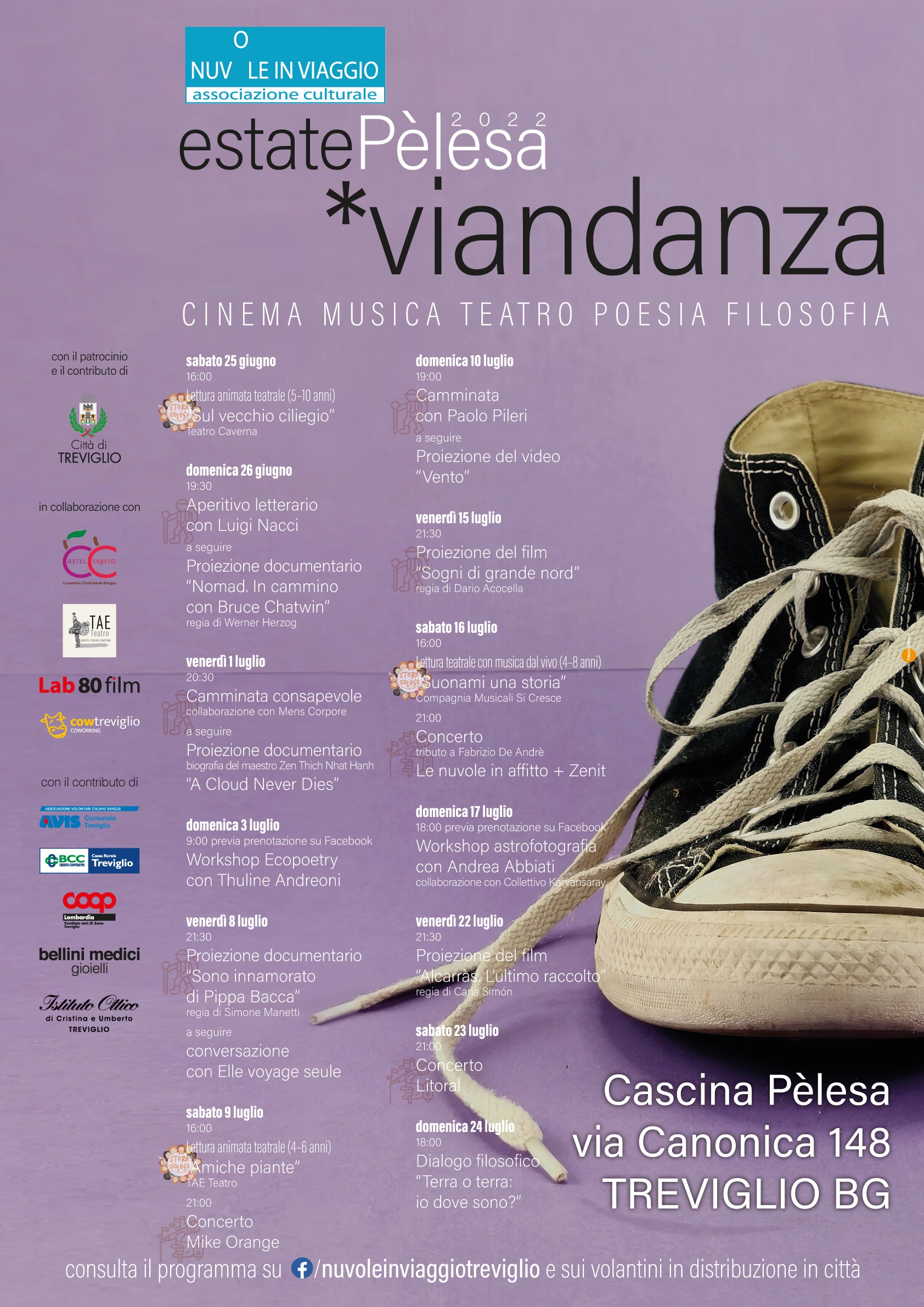 Evento facente parte di "EstatePèlesa 2022", la rassegna culturale estiva (quest'anno dedicata al tema della "viandanza") organizzata dall'associazione Nuvole in viaggio nel contesto della Cascina Pèlesa di Treviglio.