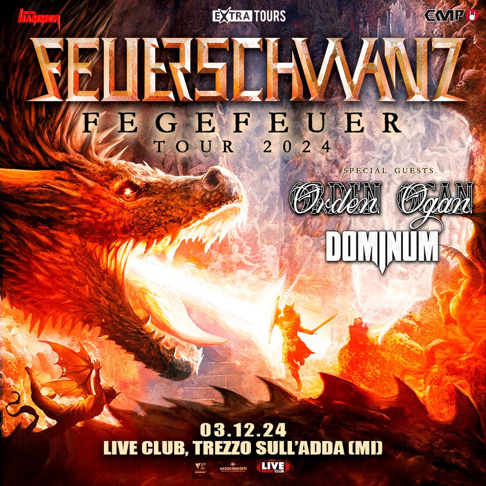 Arriva la tappa italiana di “Fegefeuer Tour 2024” il tour dei tedeschi Feuerschwanz. La formazione folk metal tedesca sarà accompagnata da Order Ogan e Dominum, in apertura di serata sul palco trezzese.