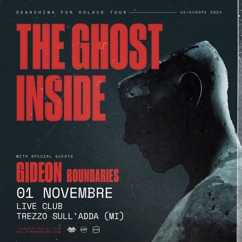 Grido di unificazione per tutti gli outcast, i The Ghost Inside sono una storia di perseveranza, devozione e tenacia oltre ogni scala di misurazione. Vittima di un terribile incidente stradale che ha portato alla perdita di una gamba del loro batterista e al trapasso di due persone, i Ghost Inside sono una marcia inesorabile verso la conquista delle avversità e, già che ci sono, delle onde sonore dell’intero globo, con un metalcore scatenato, schietto e travolgente. Sostenuti dalla Epitaph, sold out da più di 6,000 biglietti in 4 minuti (celebre lo show di ritorno allo Shrine di Los Angeles) e riconoscimenti strepitosi dalla critica, i The Ghost Inside si ereggono come titani su palchi dall’importanza inenarrabile come Hellfest, Jera on Air e Resurrection. Gideon e Boundaries si uniscono in apertura ai The Ghost Inside e vogliono vedervi più scatenati che mai sotto il palco del Live Club!
