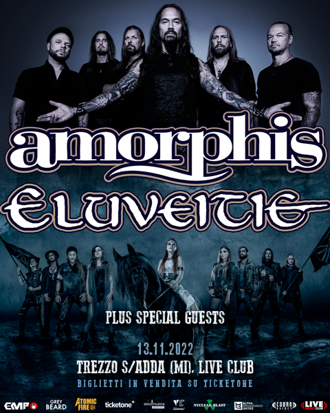 Grande ritorno in Italia per due tra le band metal più amate nel nostro paese: gli AMORPHIS ed ELUVEITIE si esibiranno al Live Music Club di Trezzo sull'Adda in un imperdibile evento che sarà completato da due special guest di alto livello che verranno resi noti in seguito.