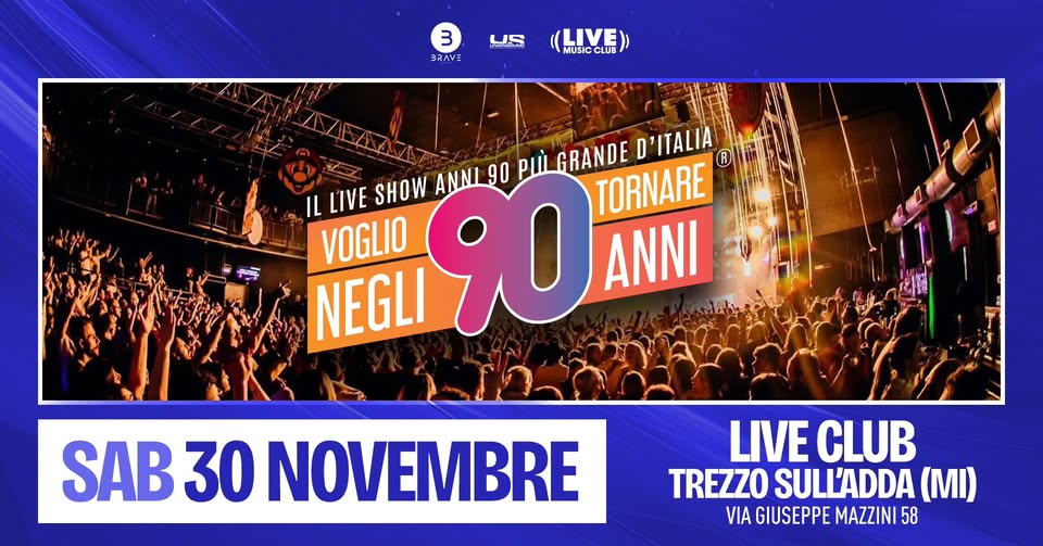 Il ritorno di "Voglio Tornare Negli Anni 90" al Live Music Club di Trezzo sull’Adda è un evento che promette di far rivivere le emozioni di un decennio indimenticabile. Un tuffo nel passato, ma con l'energia e l'entusiasmo che solo un live show di questo calibro può offrire. Questo spettacolo, infatti, è diventato uno degli appuntamenti più amati e attesi in tutta Italia, portando con sé la magia di una delle epoche musicali più iconiche e coinvolgenti. Immaginatevi circondati da luci stroboscopiche, coriandoli, stelle filanti e una serie di effetti scenici che vi faranno sentire di nuovo quei brividi di gioventù. La musica, naturalmente, sarà la protagonista assoluta della serata, con i grandi successi che hanno fatto ballare milioni di italiani negli anni '90: Gigi d'Agostino, Gabry Ponte, 883, Eiffel 65, Corona e molti altri. Ogni brano, mixato da esperti performer, farà esplodere l'atmosfera e vi trascinerà in un vortice di emozioni che solo la musica di quegli anni sa regalare.