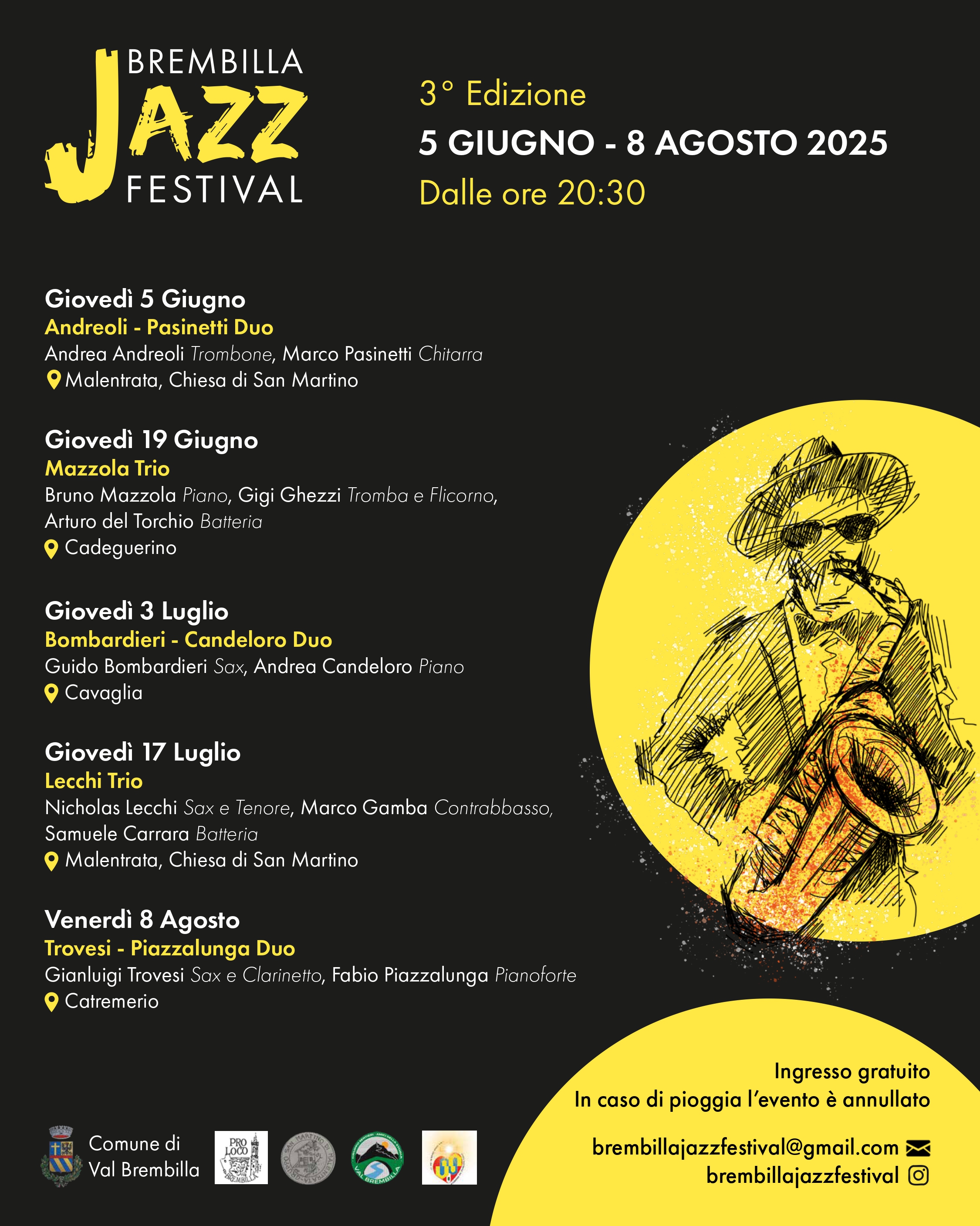 Un festival di musica jazz improvvisata, che nasce con l'obiettivo di far rivivere e valorizzare le antiche contrade e i borghi della Val Brembilla, posti incantati, attraverso un'affascinante programma di eventi musicali con ospiti d'eccezione. E' organizzato dal comune di Val Brembilla, con il sostegno di realtà locali quali Gruppo Sentieri Amici della Storia, Proloco, Parrocchia di Val Brembilla e volontari. Sono in programma 5 concerti jazz dal 5 giugno all' 08 agosto, tutti collocati in contrade antiche, immerse nella natura e in parte disabitate, ma che conservano una bellezza e un'architettura unica e capace di meraviglia, che già da sole incantano gli spettatori.