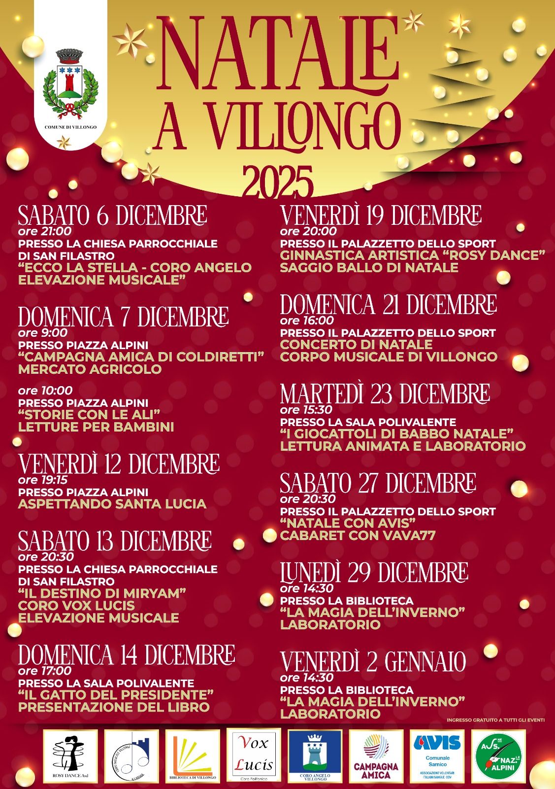 Domenica 21 dicembre, alle 16, presso il Palazzetto dello Sport di Villongo, si terrà il «Concerto di Natale» con il Corpo Musicale di Villongo.