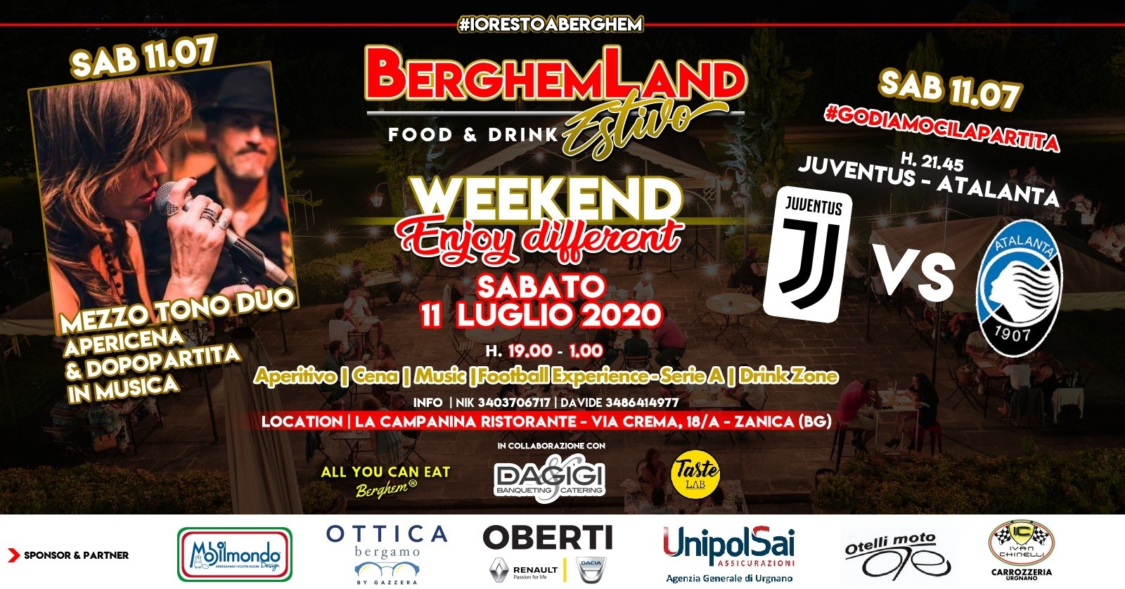 BerghemLand e il ristorante La Campanina vi invitano ad una serata che mischia il calcio e la musica dal vivo. Il divertimento è assicurato!