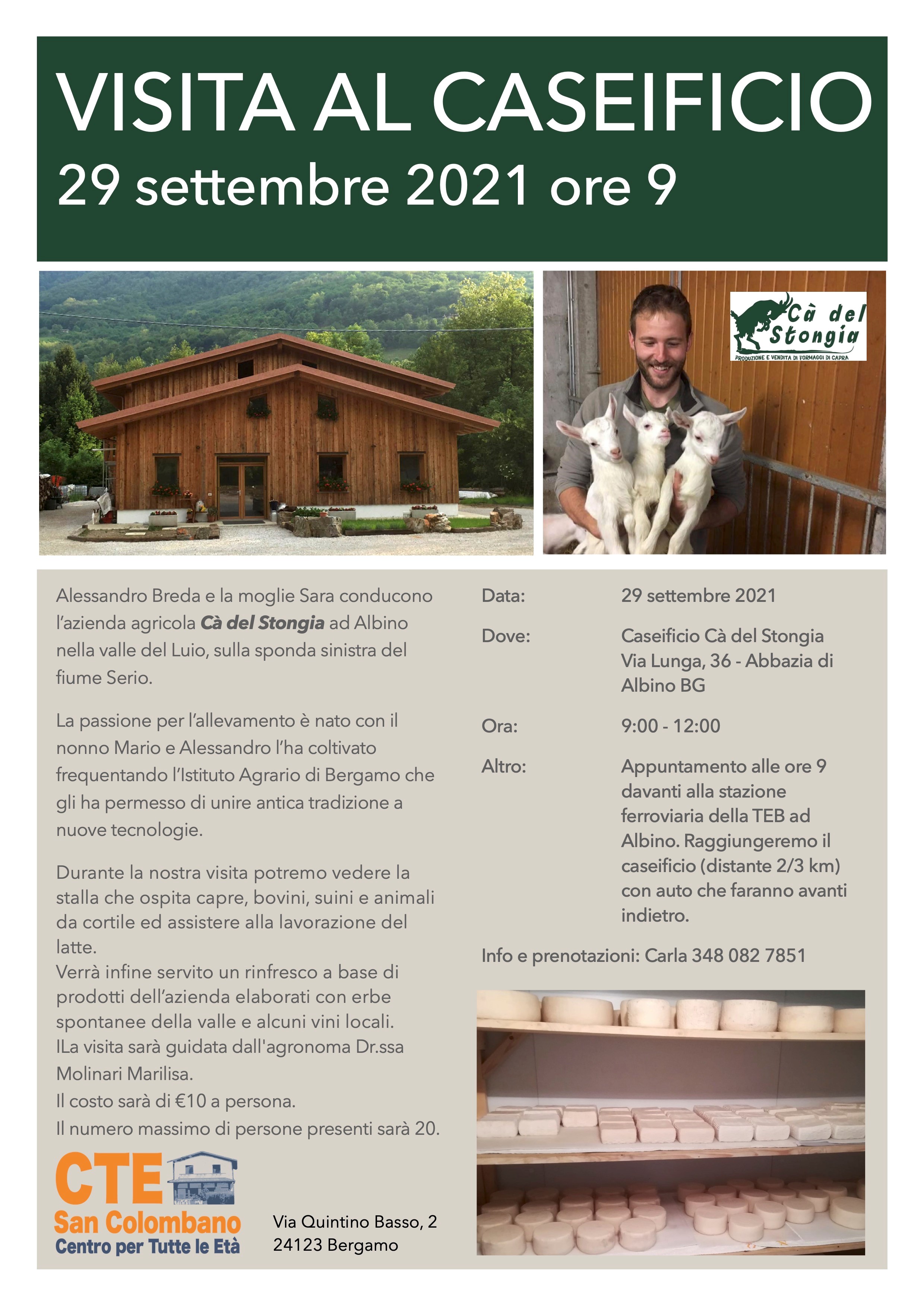 Con la dott.ssa Molinari Marilisa, una visita guidata all'azienda agricola Cà del Stongia per vedere la stalla che ospita capre, bovini, suini e animali da cortile ed assistere alla lavorazione del latte.