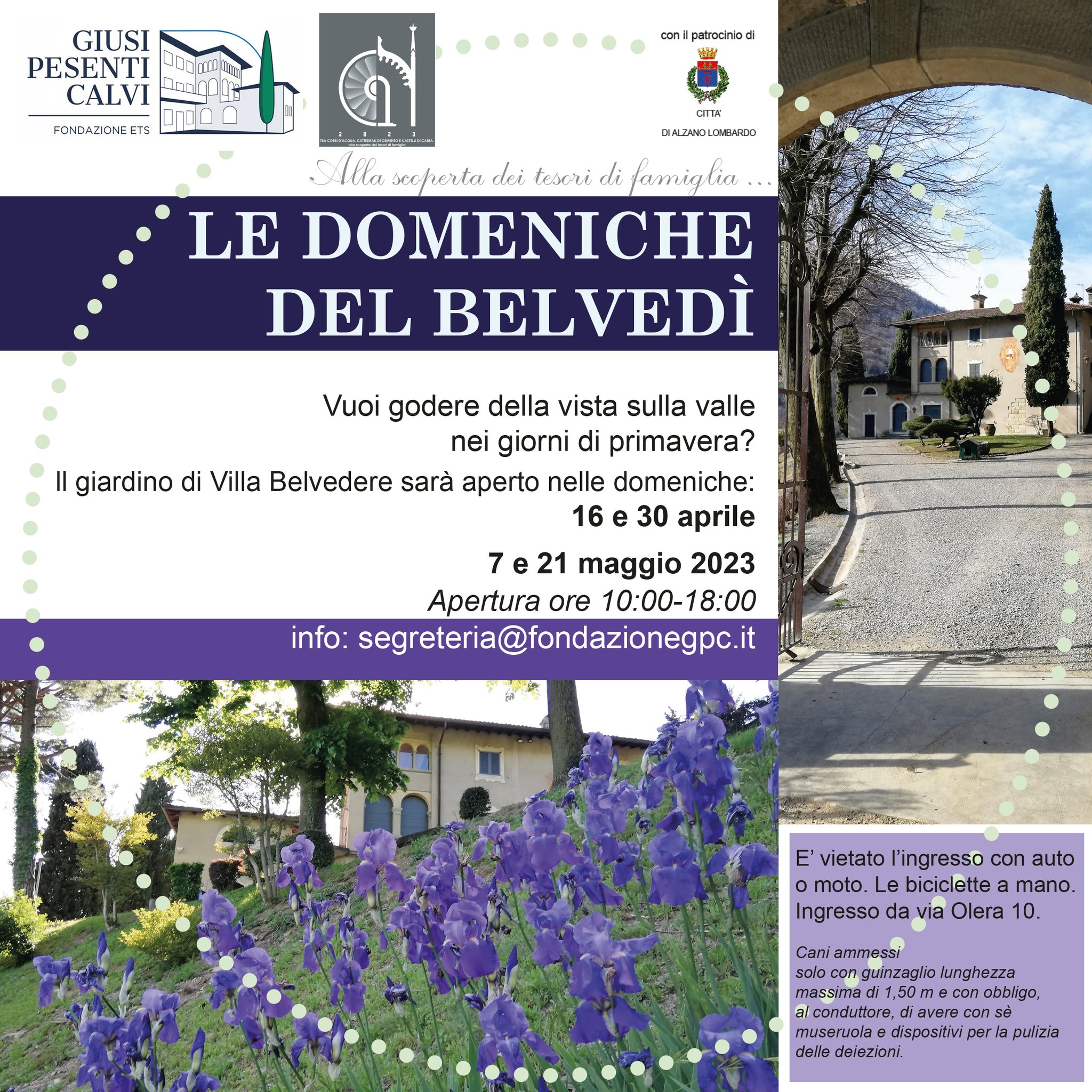 Il giardino di Villa Belvedere sarà aperto di domenica ad aprile e a maggio.