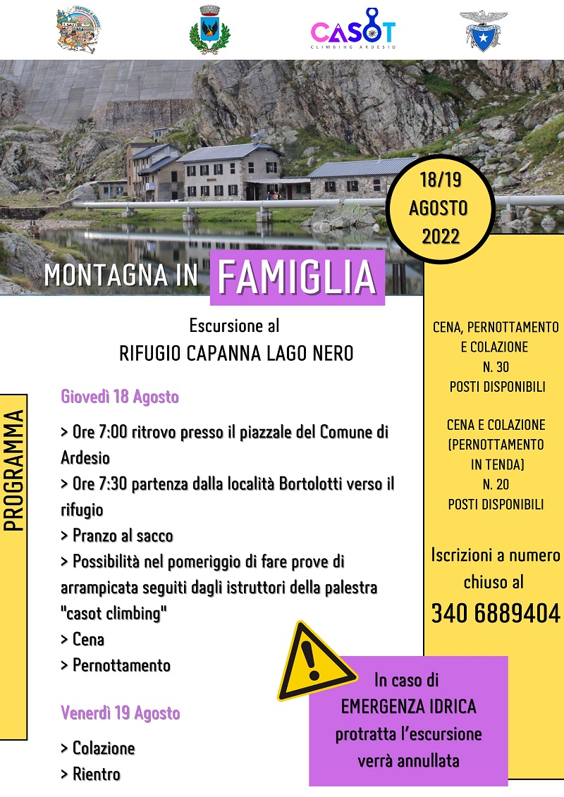 In caso di emergenza idrica protratta l'escursione verrà annullata.