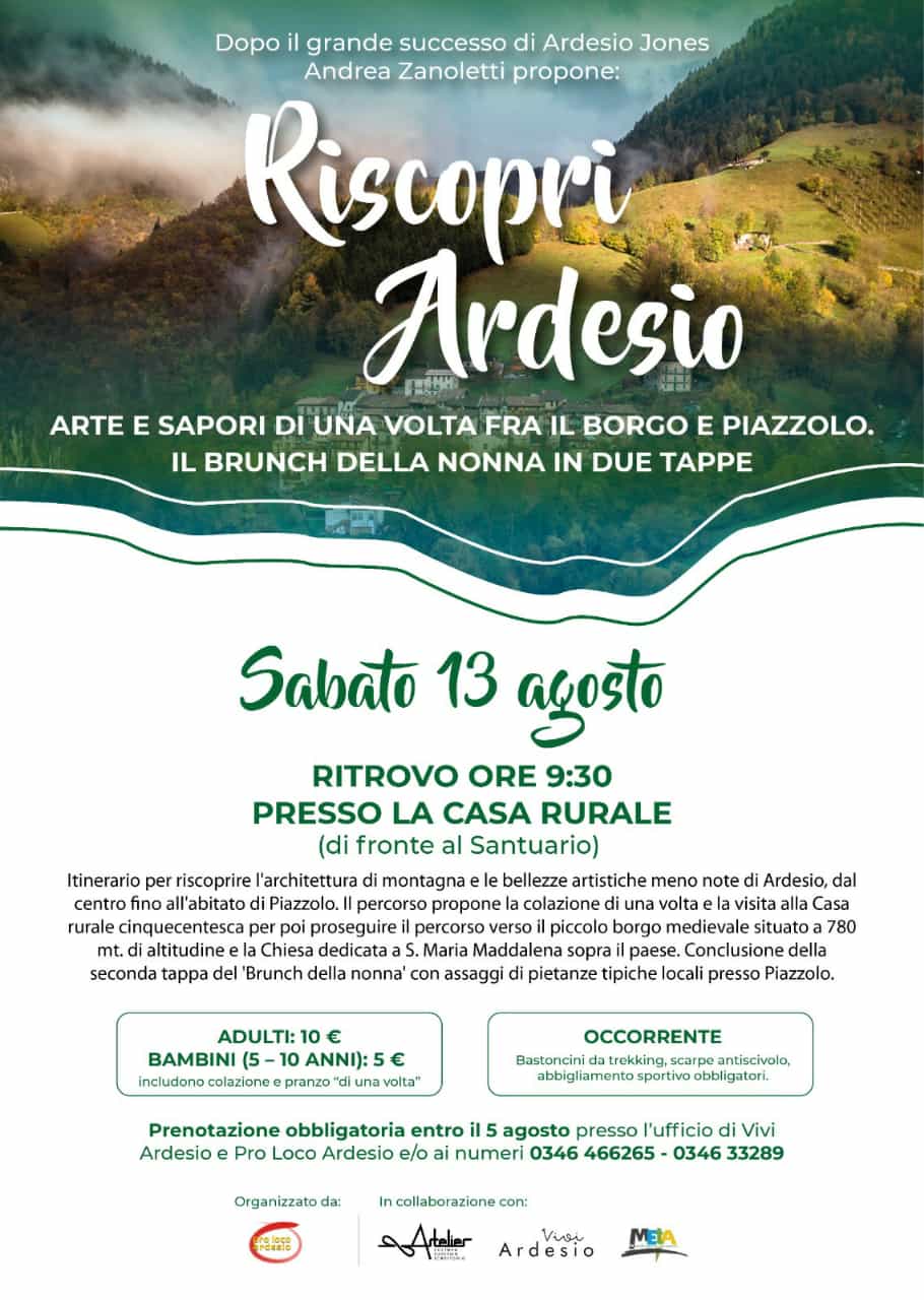 Dopo il grande successo di Ardesio Jones Andrea Zanoletti propone "Riscopri Ardesio", un viaggio tra arte e sapori di una volta fra il borgo e Piazzolo.