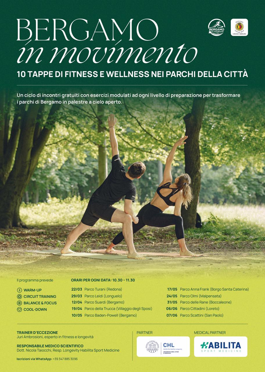 A guidare gli incontri sarร Juri Ambrosioni, personal trainer ed esperto in fitness e longevitร , ideatore del progetto che ha trovato sostegno degli assessorati alle Politiche sociali, Longevitร , Salute e Sport e alla Transizione Ecologica, Ambiente e Verde. Il progetto si avvale inoltre della supervisione del dottor Nicola Taiocchi, responsabile di Longevity Habilita Sport Medicine, partner del progetto, insieme a CHL โ Center for Healthy Longevity dellโUniversitร di Bergamo.