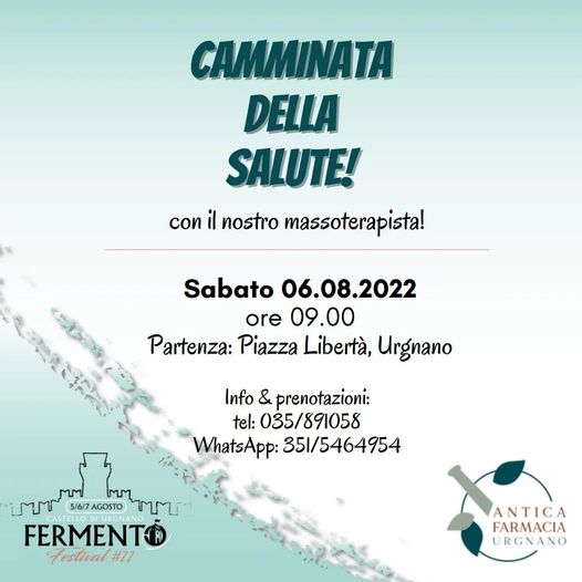 L'antica farmacia di Urgnano organizza anche quest'anno, in occasione del fermentofestival, una camminata speciale: la Camminata della Salute!