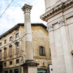 Dai portici di Largo Rezzara, dove si concentrerà la gran parte delle narrazioni sui sorprendenti e a volte enigmatici "marmi" colorati della pavimentazione, si passerà direttamente alla chiesa di Sant' Alessandro in Colonna, della quale ammireremo le colonne in arabescato orobico e l'altrare laterale.
