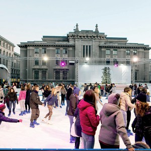 In Piazza della Libertà: il villaggio di ghiaccio di Bergamo.