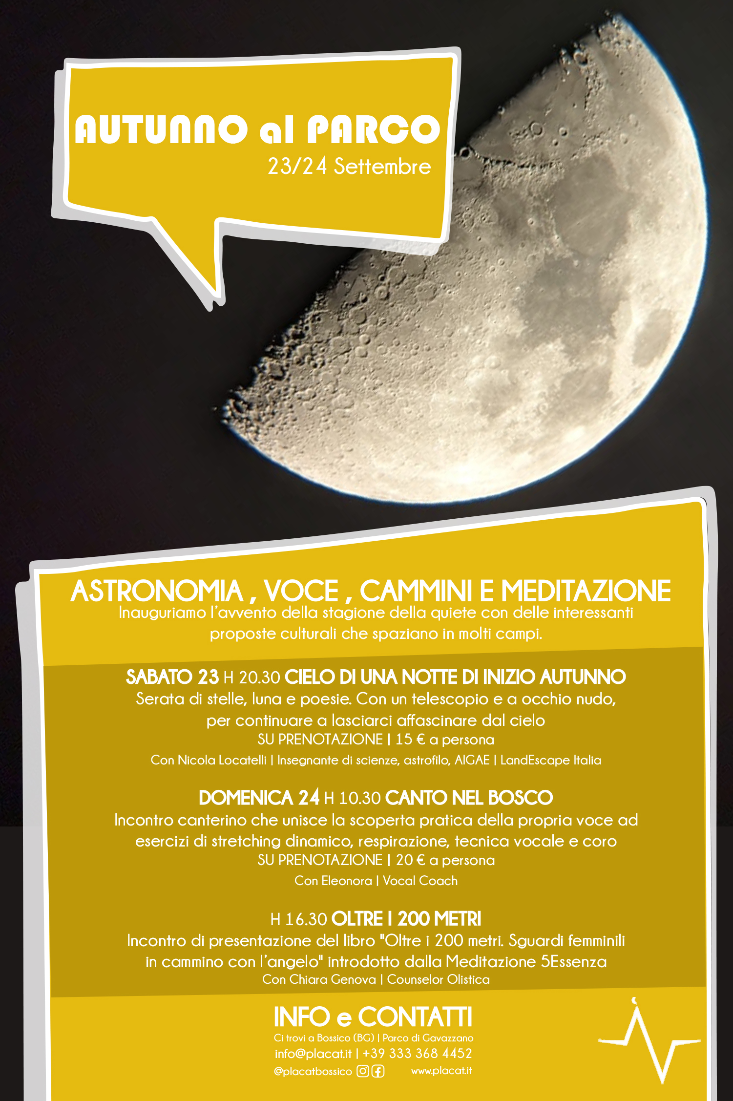 Si inaugura l’avvento della stagione della quiete con delle interessanti proposte culturali che spaziano in molti campi: astronomia, voce, cammini e meditazione.