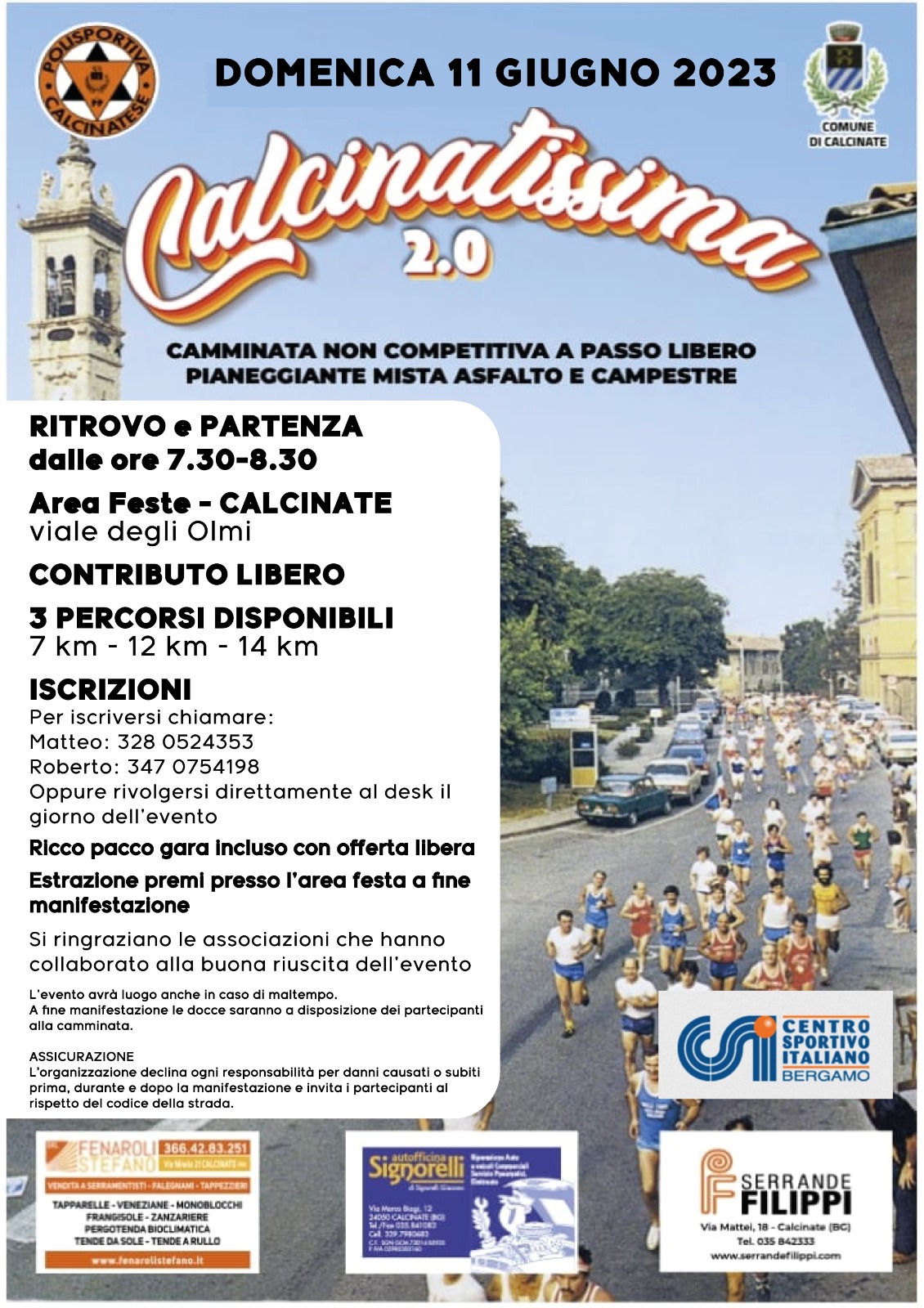 La polisportiva calcinatese organizza la camminata non competitiva a passo libero pianeggiante mista asfalto e campestre "Calcinatissima 2.0", con tre percorsi di diversa difficoltà.