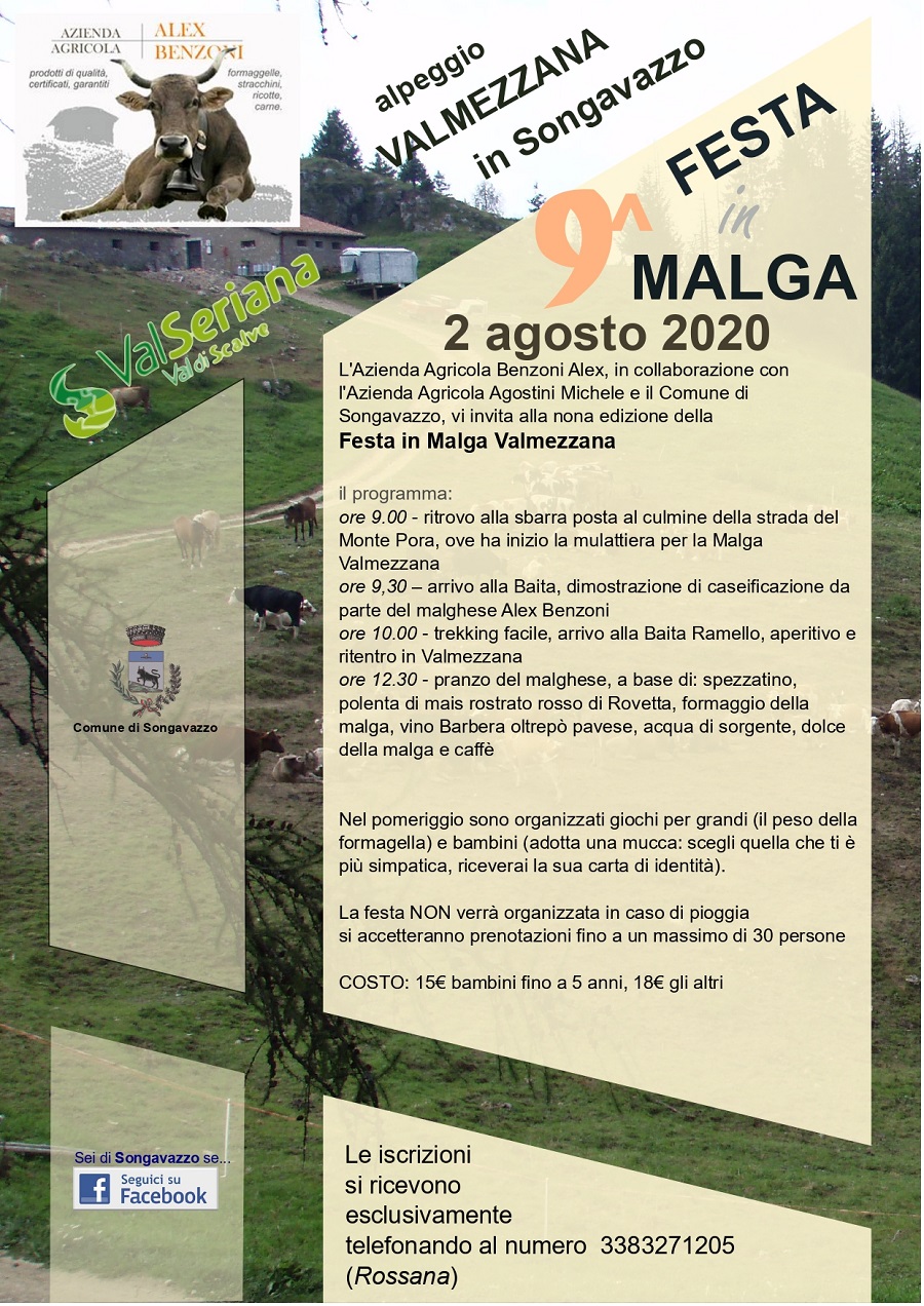 L'Azienda Agricola e Agriturismo Benzoni Alex in collaborazione con il Comune di Songavazzo vi invita alla 10a edizione della Festa in Malga Valmezzana.