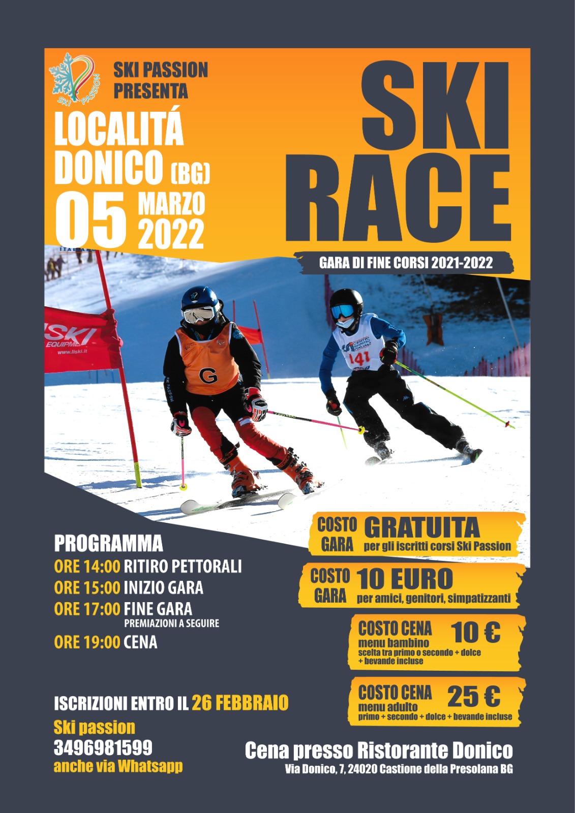 Sabato 5 marzo, in localitร Donico a Castione della Presolana, si terrร la "Ski Race", gara di fine corsi 2021-2022.