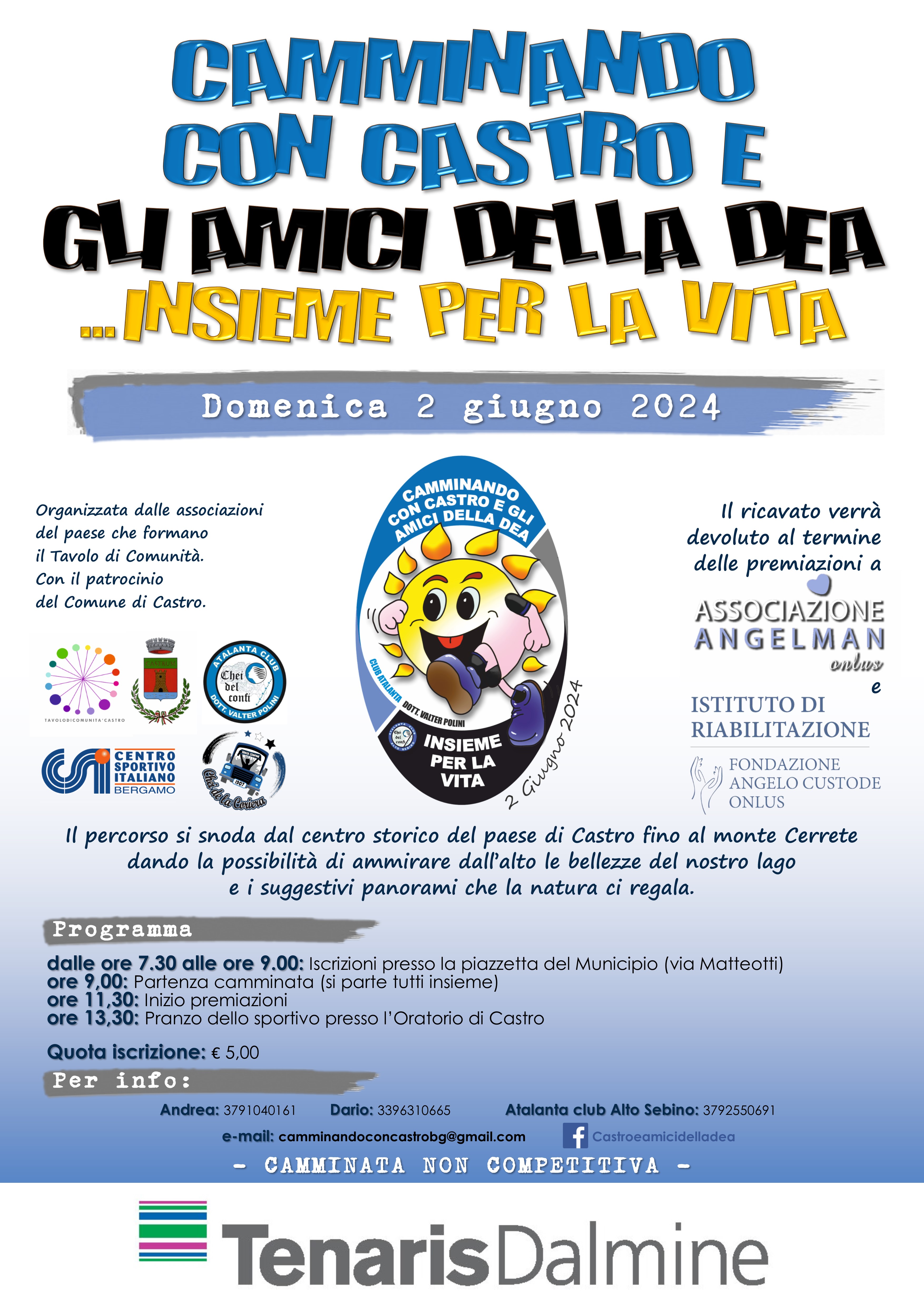 Il ritrovo è dalle ore 7,30 alle 9 presso la piazzetta del Municipio di Castro in Via Matteotti.