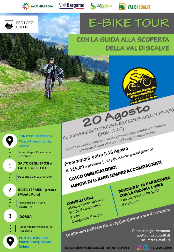Con la guida alla scoperta della Val di Scalve. Una pedalata in tutta sicurezza e senza pensieri sugli spettacolari percorsi panoramici sterrati e non della Regina delle Orobie. per finire una buon pranzo in compagnia.