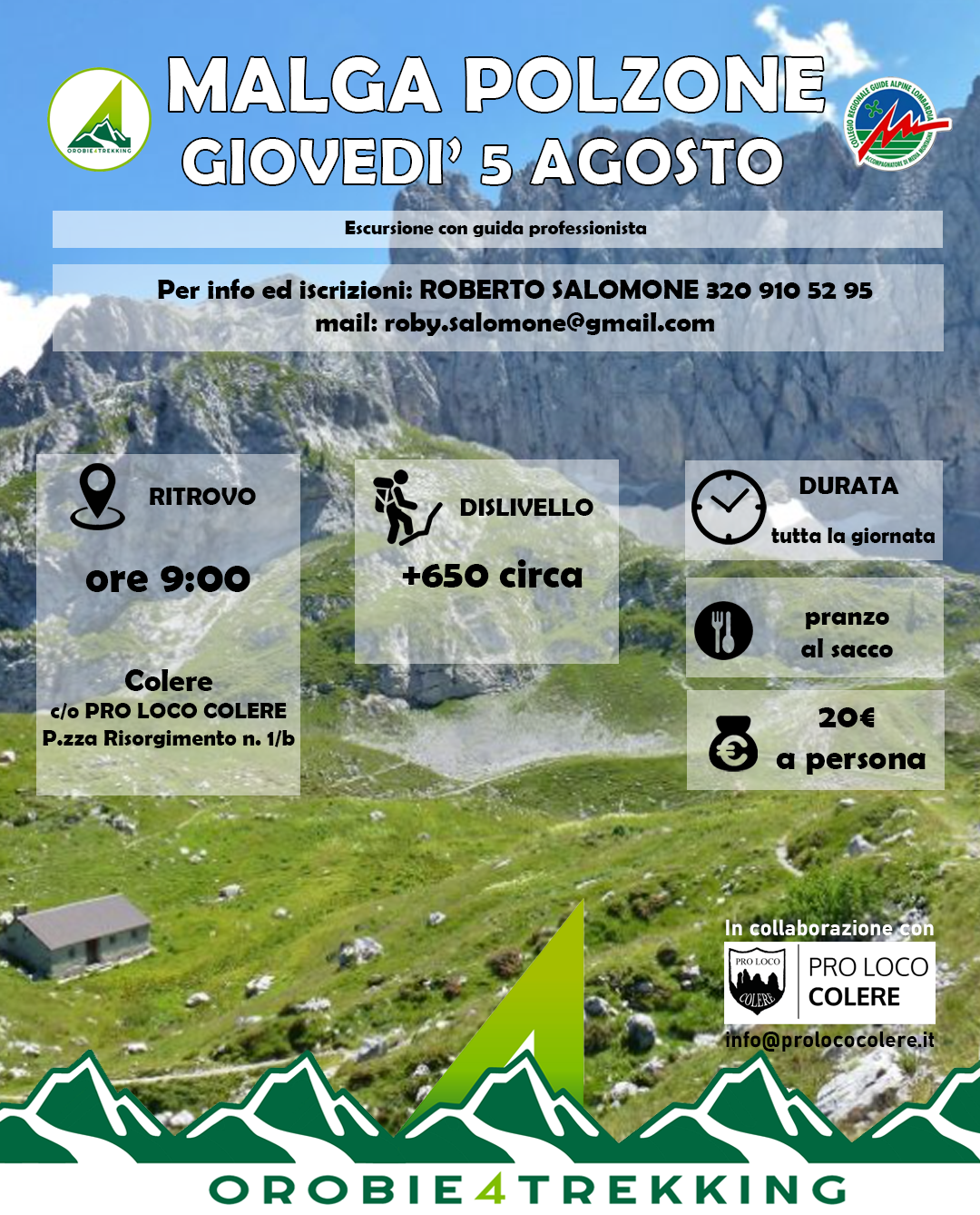Giovedì 5 Agosto, in collaborazione con Orobie 4 trekking, vi proponiamo una gita guidata a Malga Polzone.
