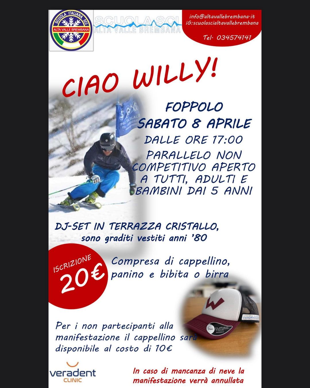 Sabato a Foppolo si terrà parallelo di sci non competitivo "Ciao Willy!", organizzato dalla Scuola Sci Alta Valle Brembana. La gara è aperta a tutti.