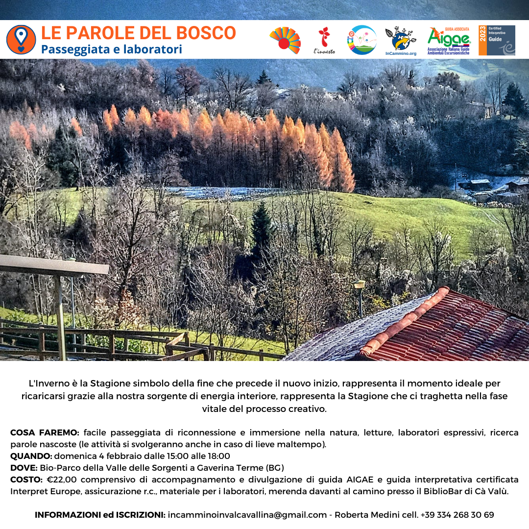 COSTO: โฌ22,00 comprensivo di accompagnamento e divulgazione di guida AIGAE e guida interpretativa certificata Interpret Europe, assicurazione r.c., materiale per i laboratori, merenda davanti al camino presso il BiblioBar di Cร Valรน (minimo 7 partecipanti).
