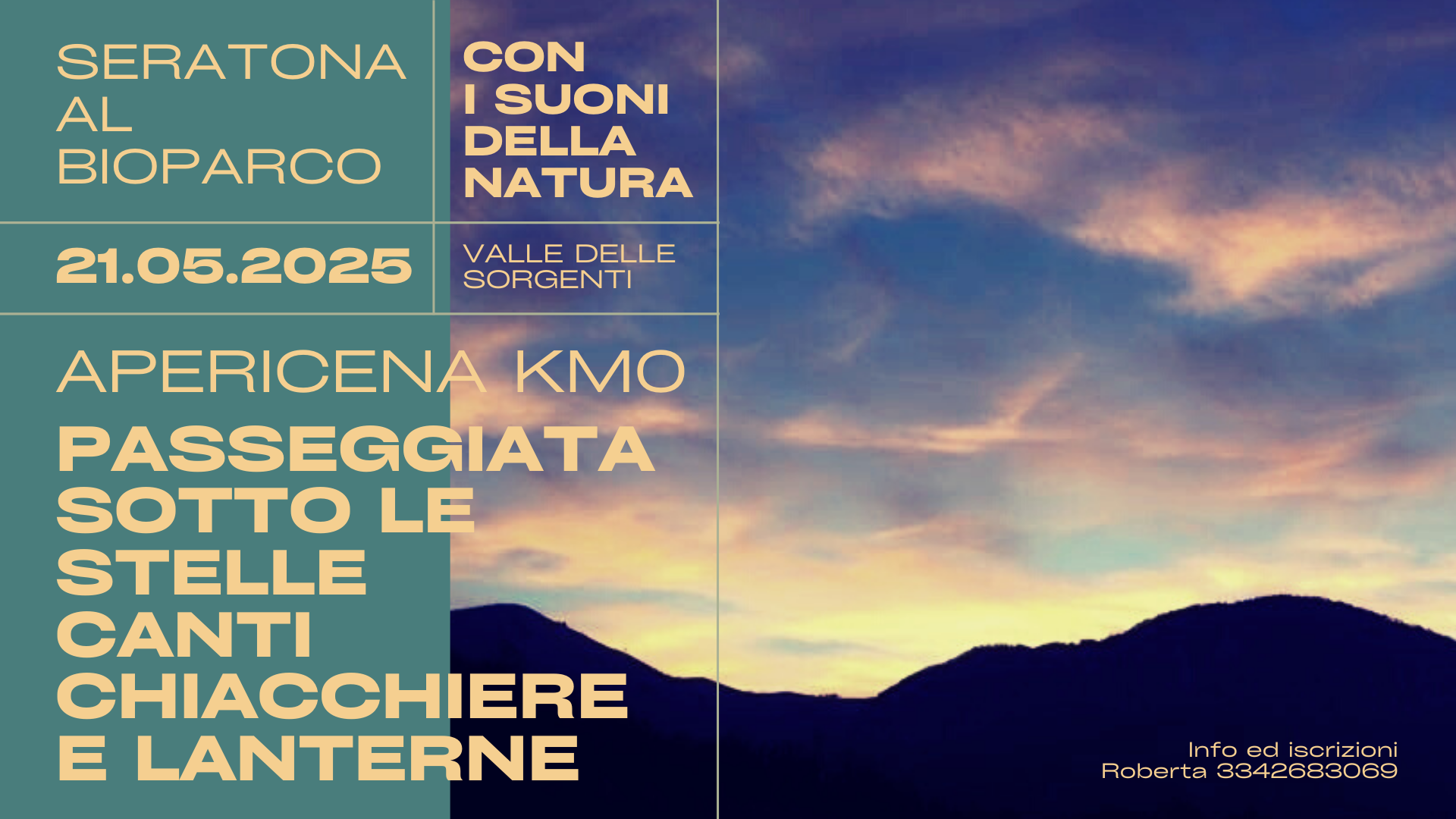 Ecco gli ingredienti per una serata meravigliosa, un luogo magico, un'apericena con prodotti a chilometro zero, una passeggiata sotto le stelle. Chiacchiere e canti immersi nella natura.