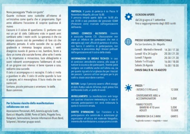 Per la buona riuscita della manifestazione collaborano con noi: Associazione Pensionati, AVIS, Azienda agricola Scotti, Banda di Mapello, GEAM, Ponte di Stelle, Progetto Terra, Rataplam, Seminastorie, Servizio Informazioni Blues Band, Tuliprendi, Volontari gruppo ravioli.