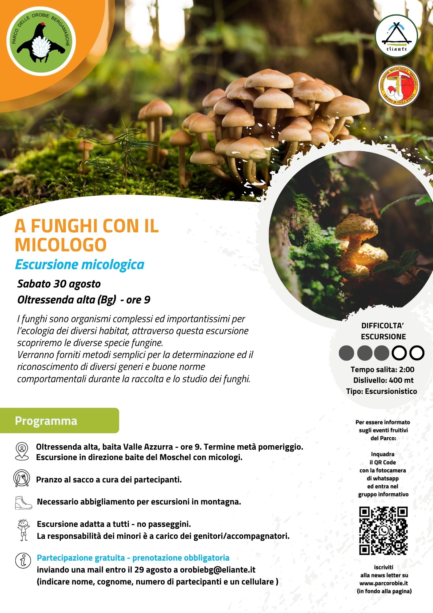 Un'escursione micologica con un esperto del settore. Verranno forniti metodi semplici per la determinazione ed il riconoscimento di diversi generi e buone norme comportamentali durante la raccolta e lo studio dei funghi.