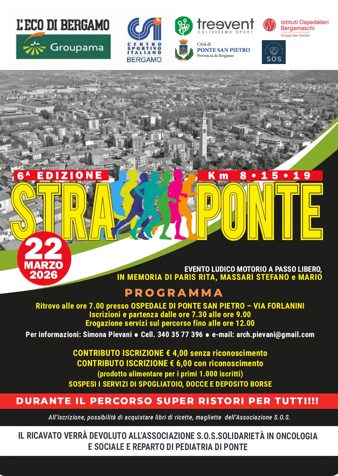 Domenica 22 marzo a Ponte San Pietro, torna la sesta edizione della maratona a passo libero in memoria di Paris Rita e Massari Stefano e Mario.