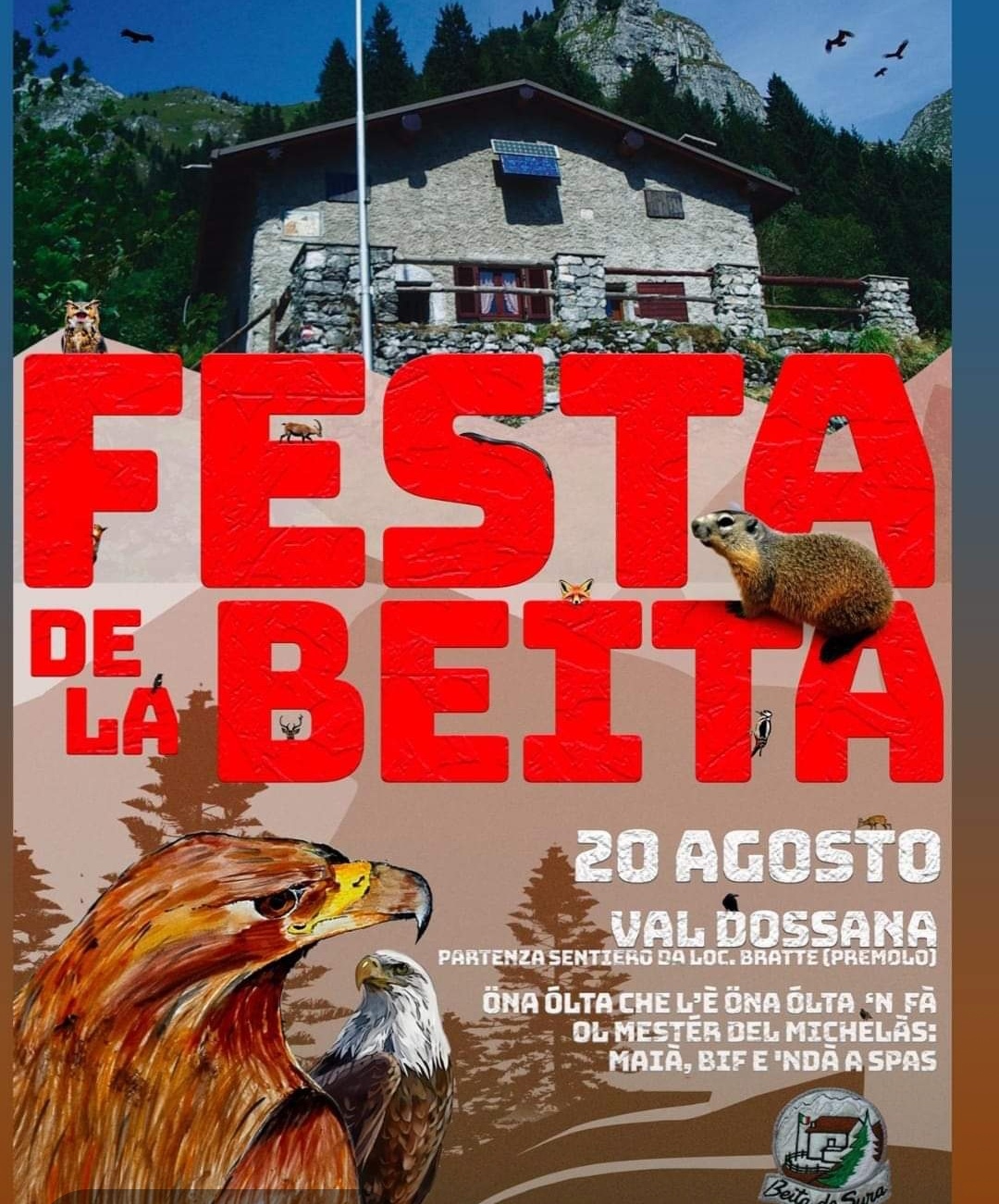 Sarà possibile raggiungere la Beita de sura prendendo il sentiero che parte da Località Bratte (Premolo). Il pranzo inizierà alle ore 12.
