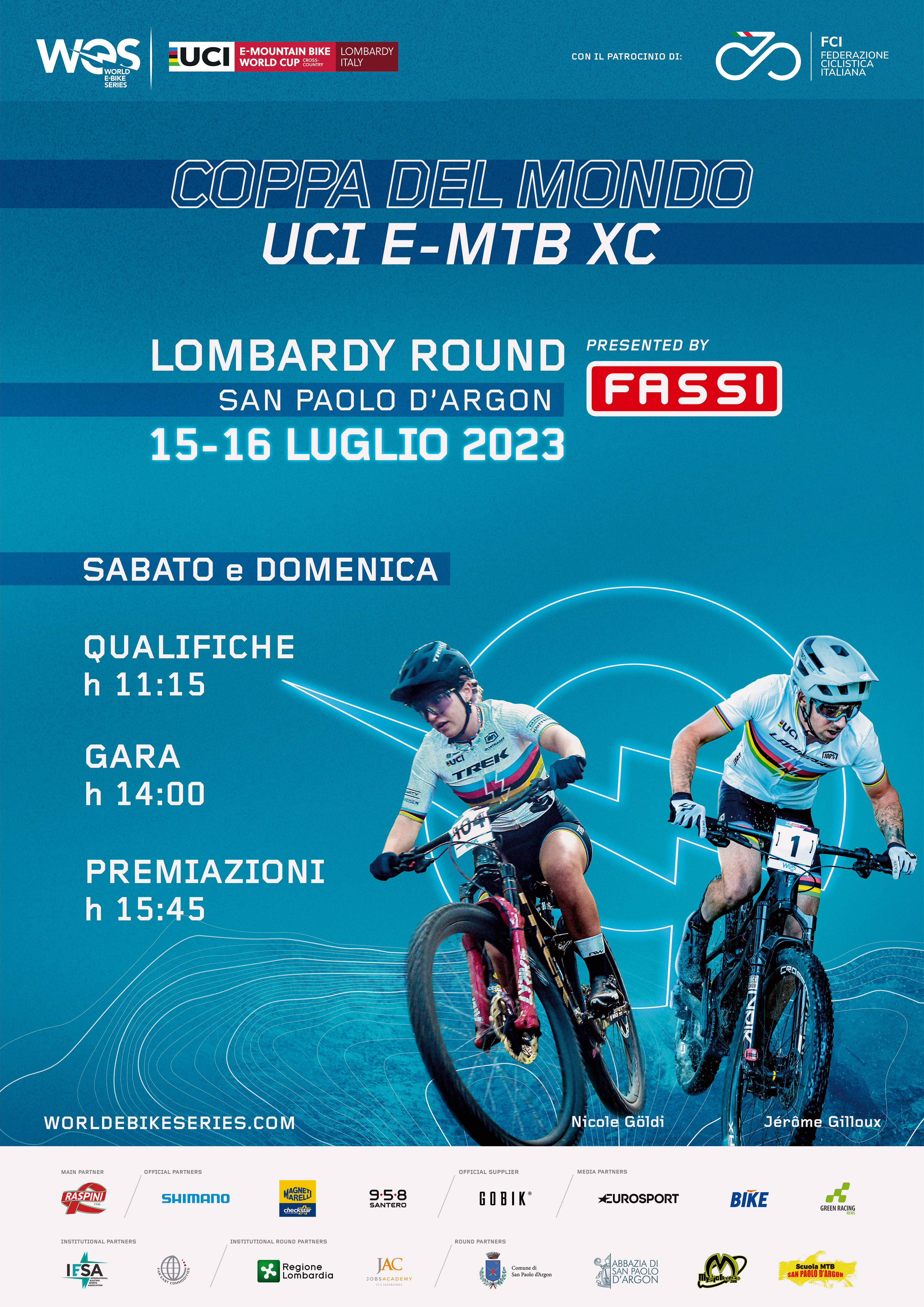 In questo scenario, il Gruppo Fassi, rinomato produttore mondiale di gru con sede nella zona di Bergamo, e che vanta una lunga storia di sponsorizzazioni globali nei principali sport su due ruote, introduce il supporto alla Coppa del Mondo WES UCI di E-MTB. In griglia di partenza, i piloti italiani sono pronti a dare il meglio di sé nelle due gare in programma sabato 15 e domenica 16 luglio in Lombardia, con i campioni nazionali di E-XC in carica, Martino Fruet (Lapierre Trentino) e Anna Oberparleiter (RH Racing Specialized).