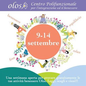 Da lunedì 9 a sabato 14 settembre vengono aperte le porte del centro polifunzionale Olos a coloro desiderassero provare gratuitamente le attività offerte nei prossimi mesi.