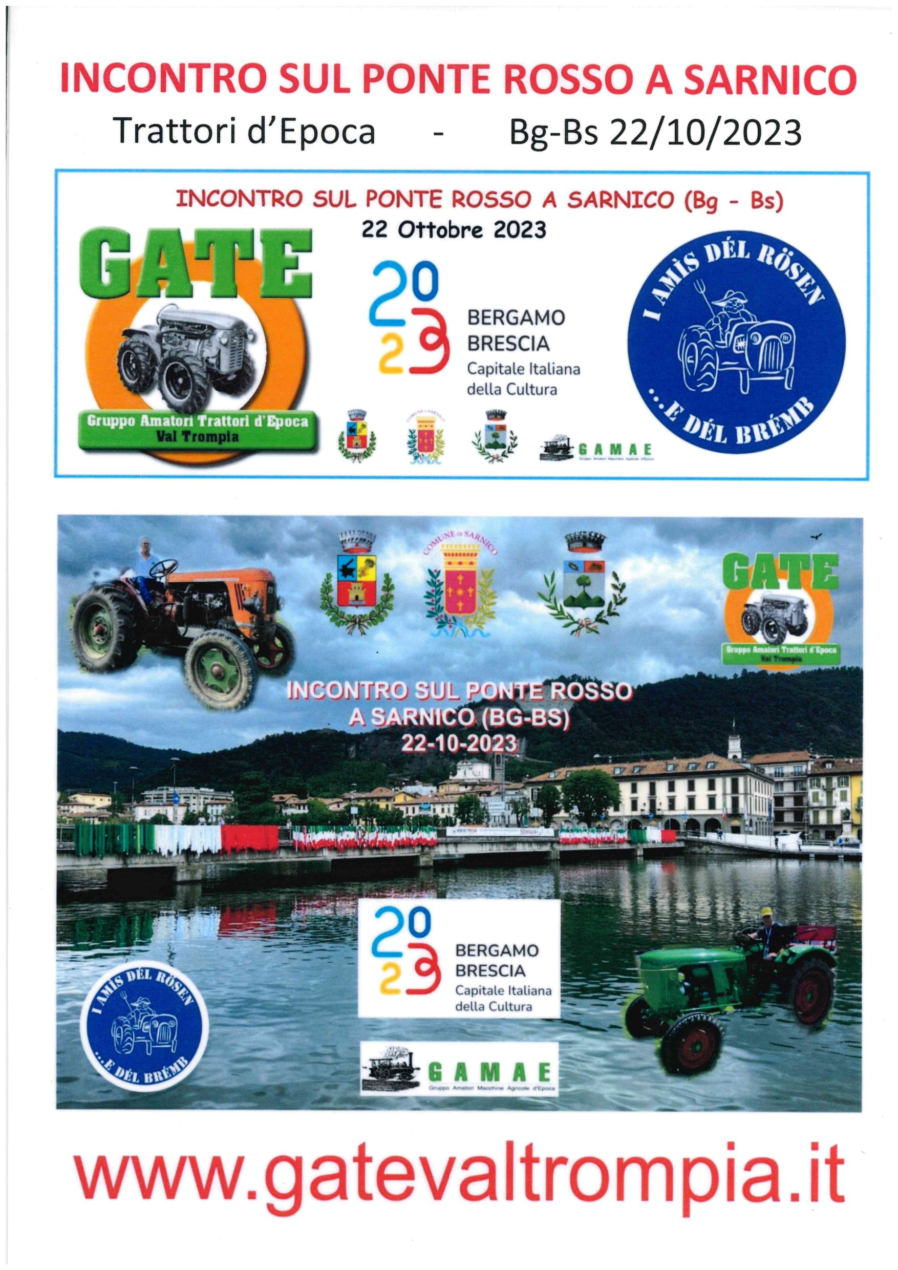 G.A.T.E. Valtrompia organizza con il Comune di Sarnico, un raduno di trattori storici sul Ponte rosso di Sarnico in occasione di Bergamo-Brescia Capitale Italiana della Cultura.