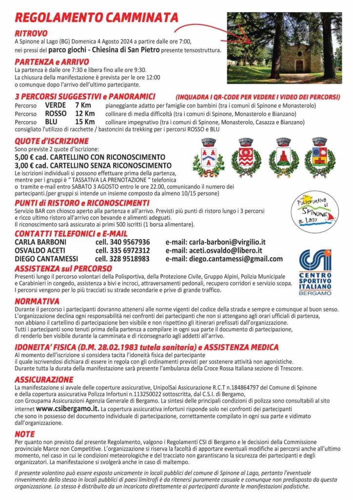 Domenica 4 agosto arriva la 23esima edizione della camminata non competitiva di Spinone al Lago.